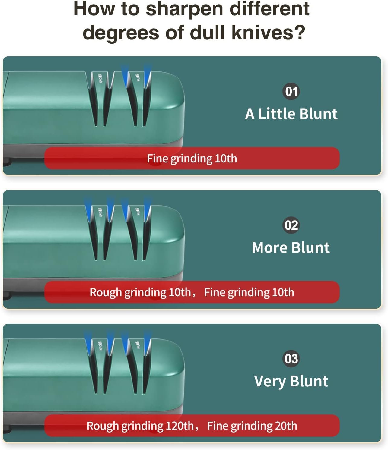 Quick and Simple Sharpening: Obliquely insert the dull knife and closely touch the outside wall, and then pull it from outside to inside to sharpen. You will enjoy sharpness like new after 30 seconds.