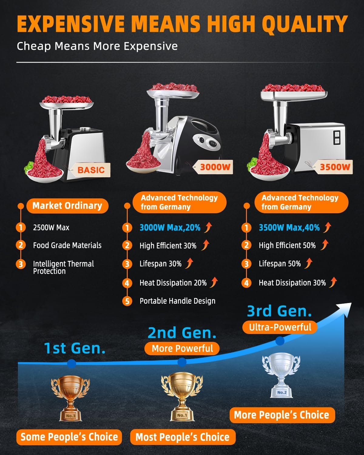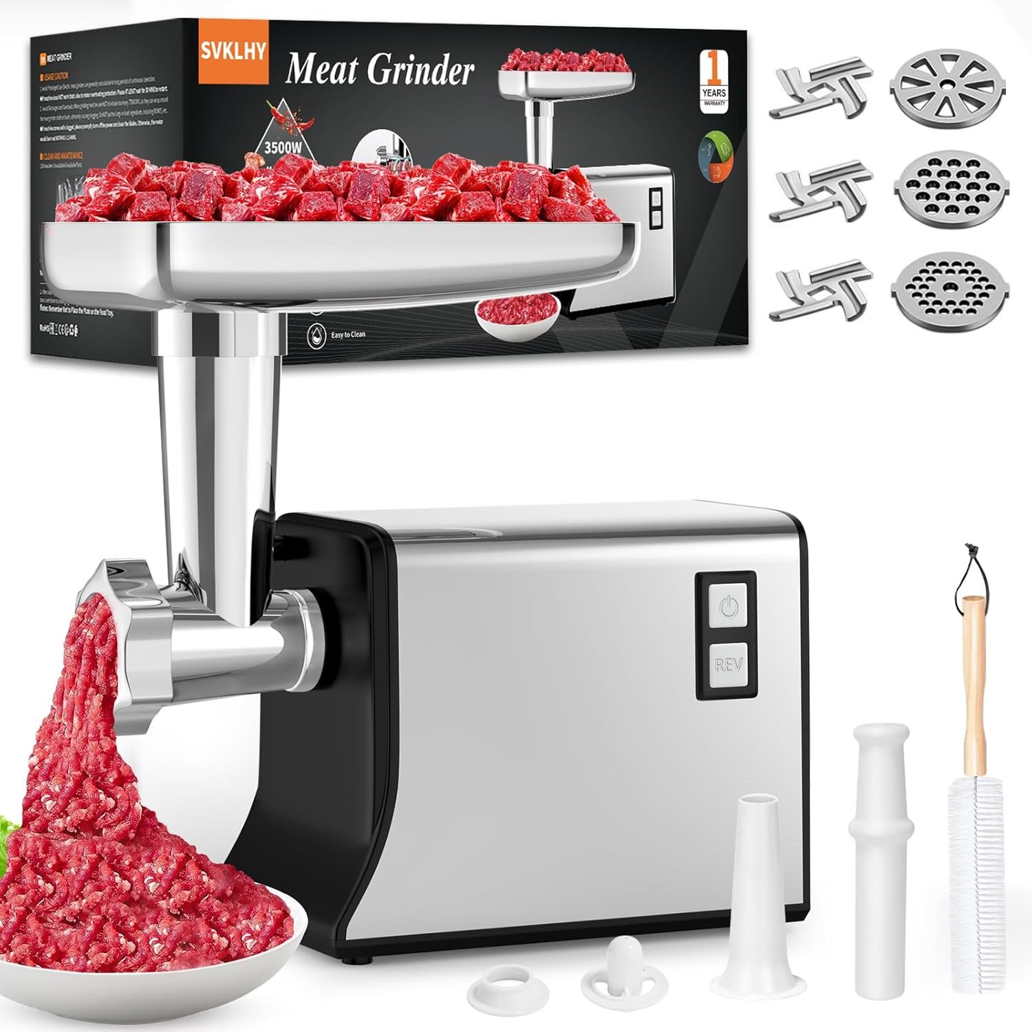 【High Efficiency & Powerful】Note:Please make sure not to include too many tenons. The SVKLHY electric meat grinder features a robust motor (3500W max), allowing you to quickly grind large amounts of meat. Its high efficiency saves you time and effort, making it an indispensable tool for home cooks and professional chefs alike. Ideal for beef, chicken, pork, fish and more, this versatile meat grinder is a must-have for any kitchen.