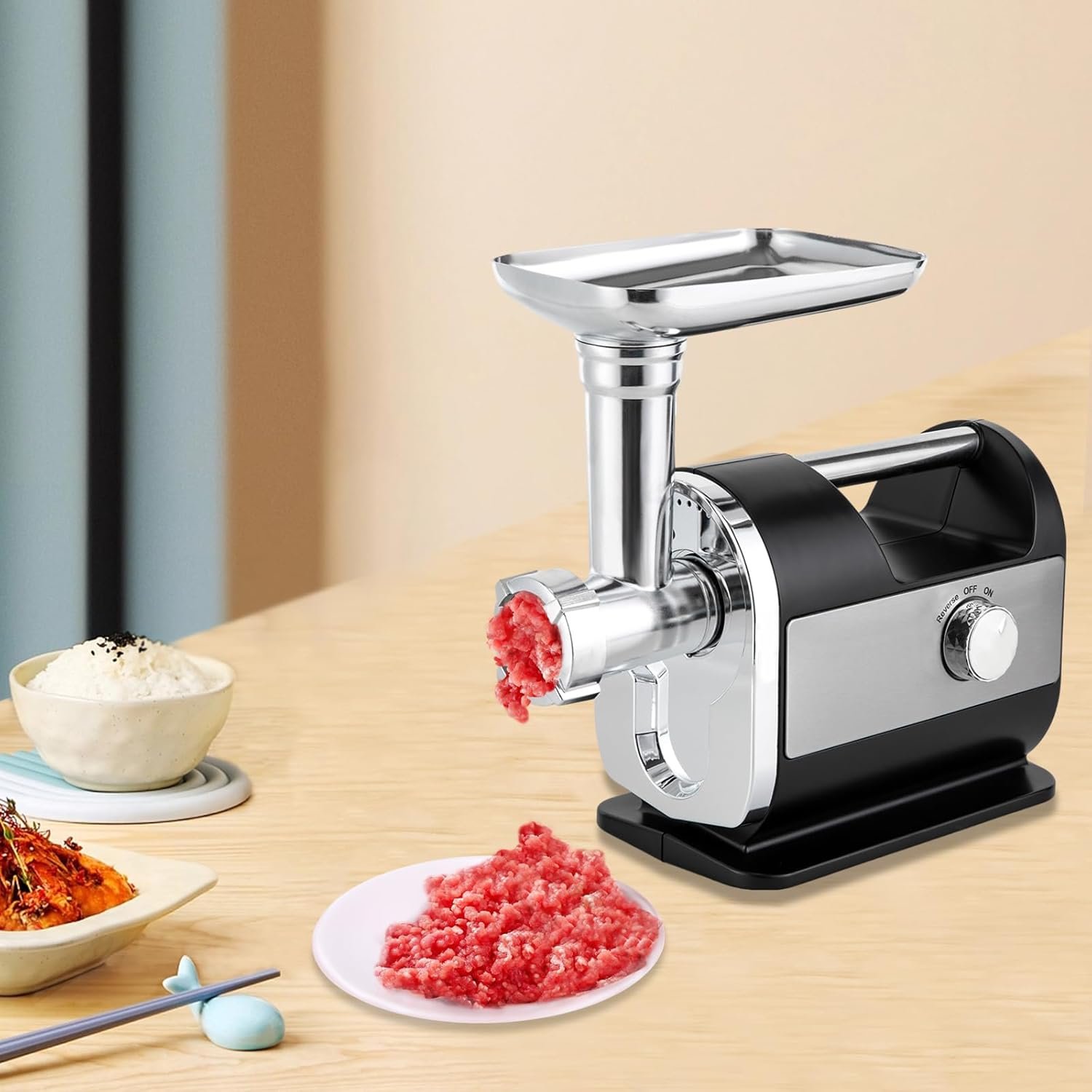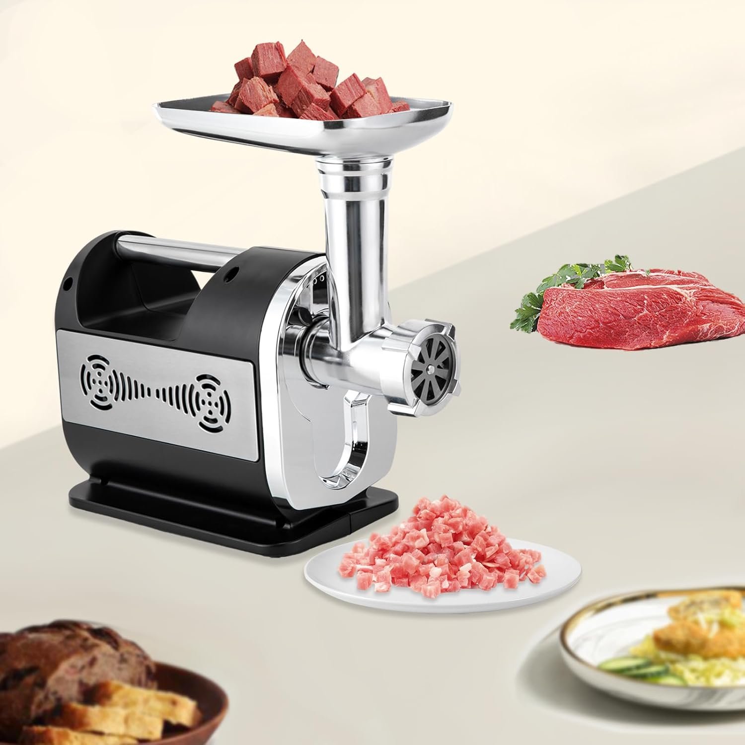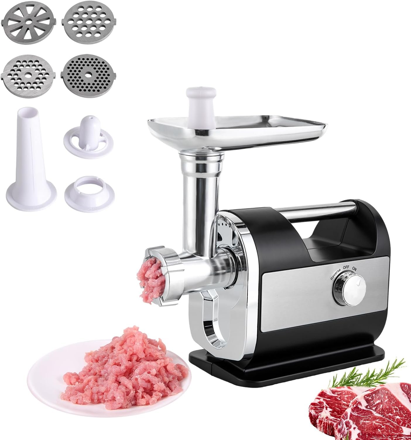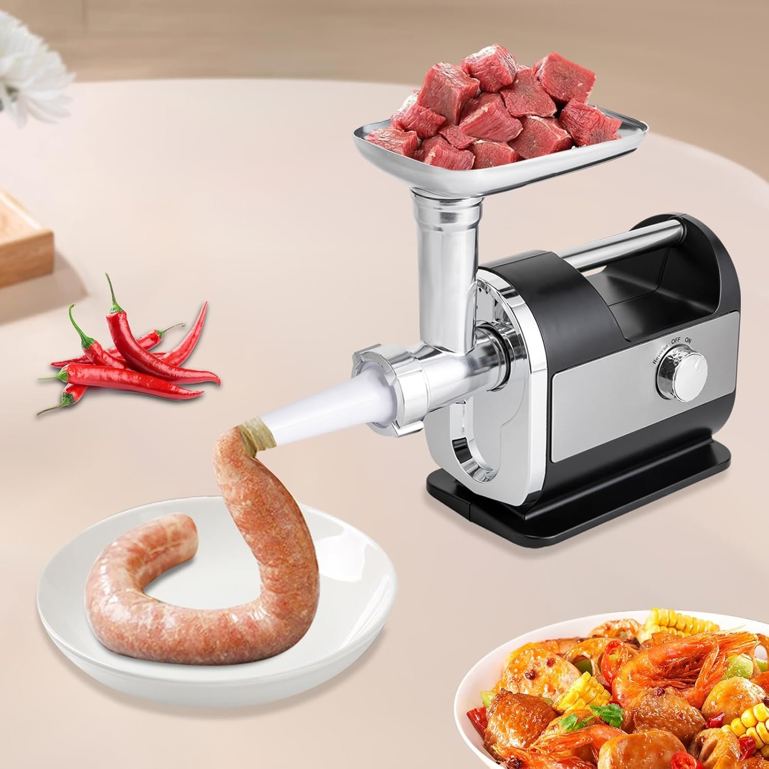 【Healthy Cooking Options】Equipped with a variety of grinding plates and accessories like a sausage stuffer and kit, this grinder enables you to prepare a wide range of healthy and nutritious foods, including minced meat, meatballs, sausages, and more, right at home.