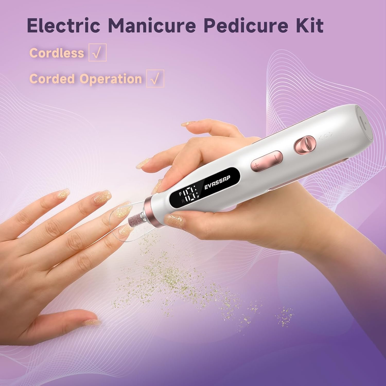 The first generation of EVASSAP electric nail fie is rechargeable and portable , and its 10-speed adjustable setting can meet the needs of both arcylic nails remover and natural nail grinder(5500-10000RPM).