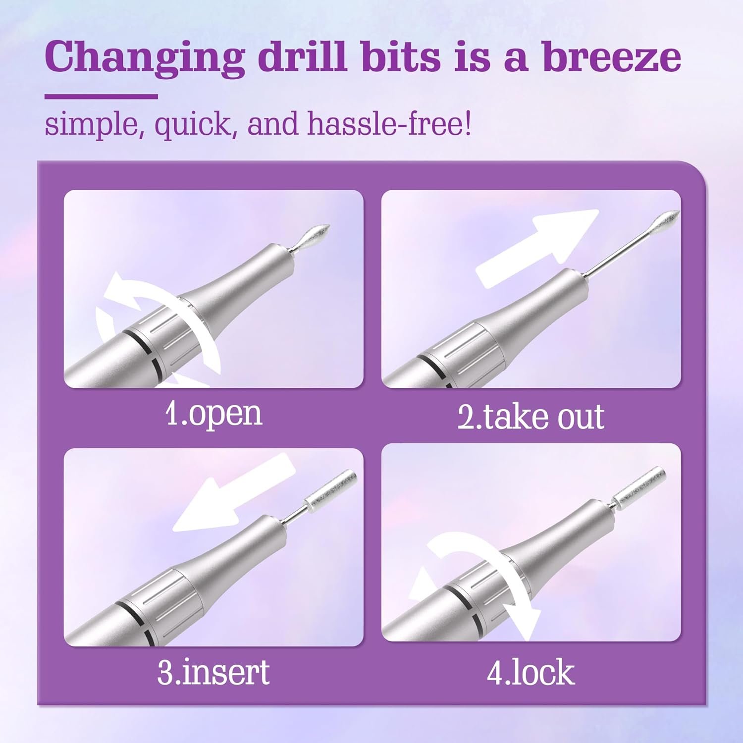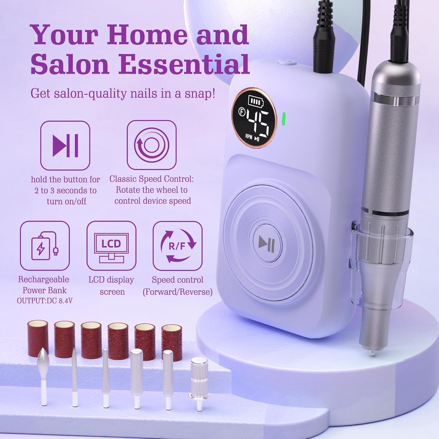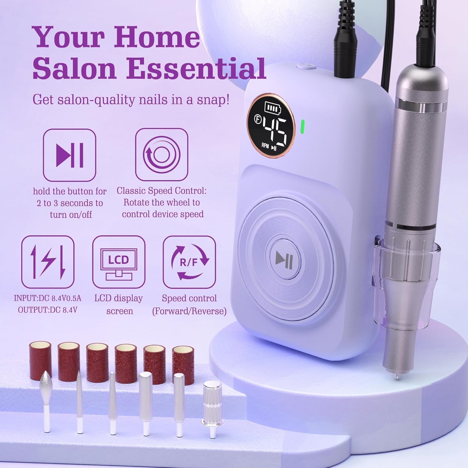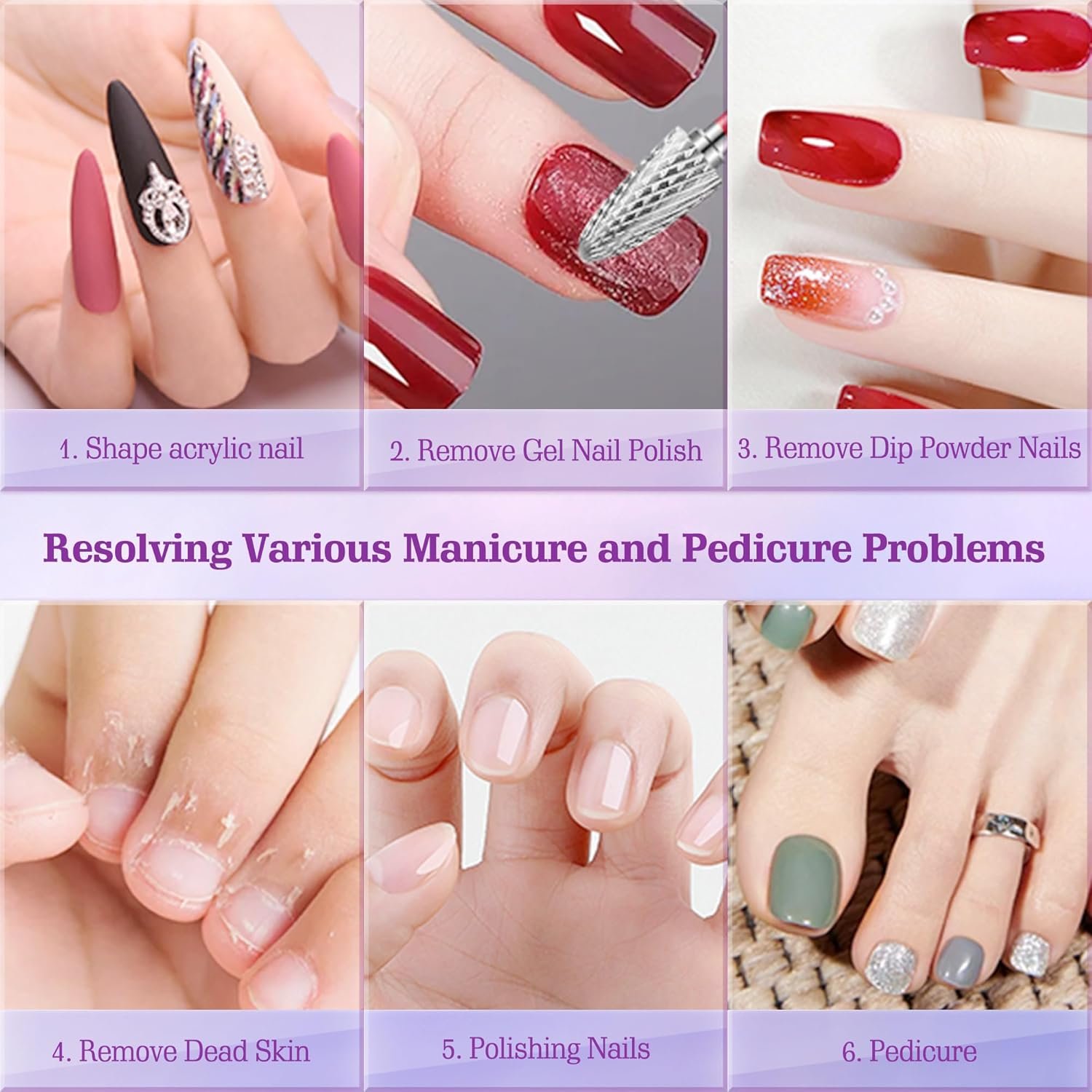 Suitable for All Skill Level: Designed with beginners in mind, our electric nail file is user-friendly and safe. No more struggling with manual nail files or risking accidental cuts. Simply choose your desired speed, select the right drill bit, and let the machine do the rest!