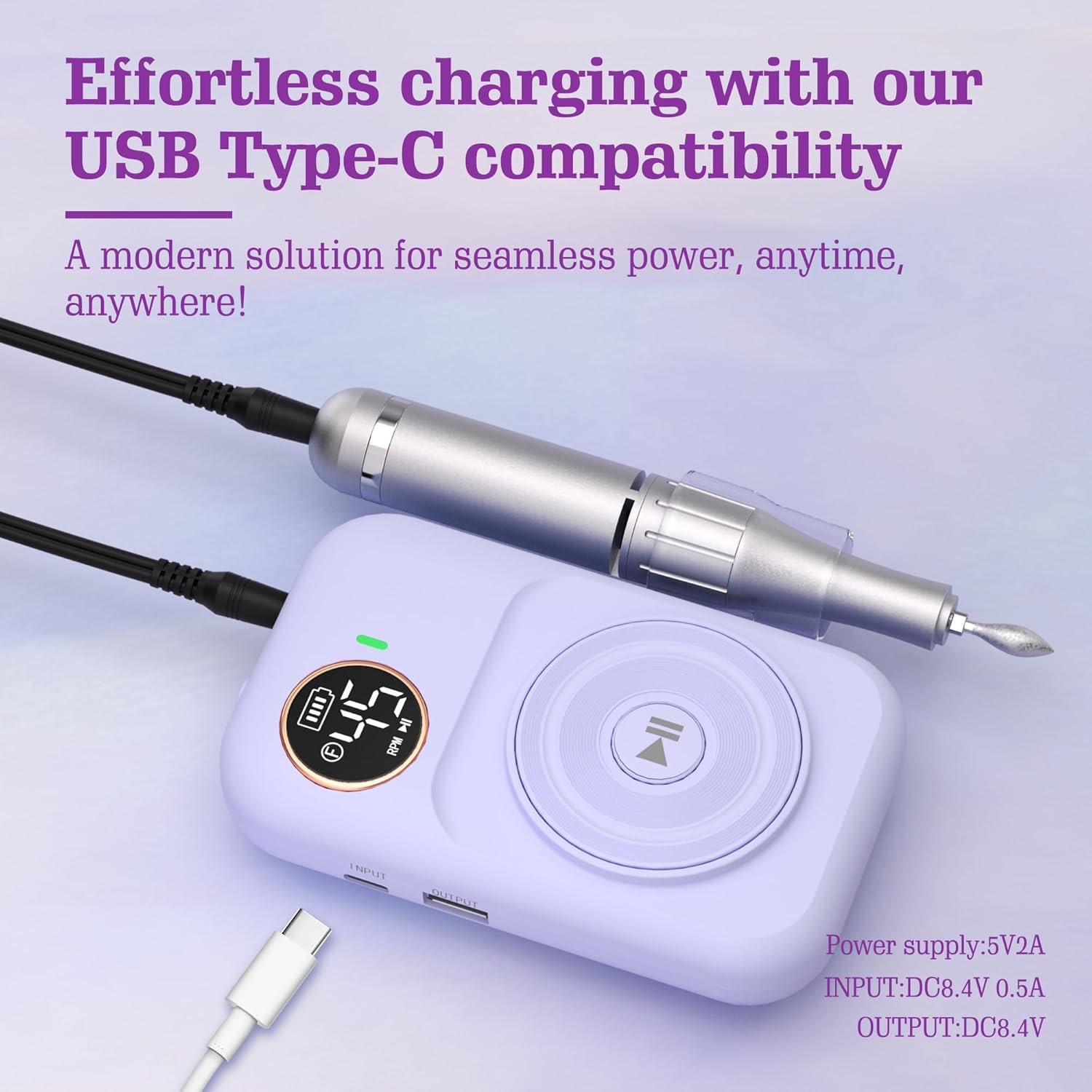 Compact, Portable and Rechargeable Power Bank: Our nail drill machine isn’t just sleek and compact, it also serves as a rechargeable power bank. Take it with you wherever you go and enjoy salon-worthy nails wherever you are – from vacations to business trips, or even your best friend’s place!
