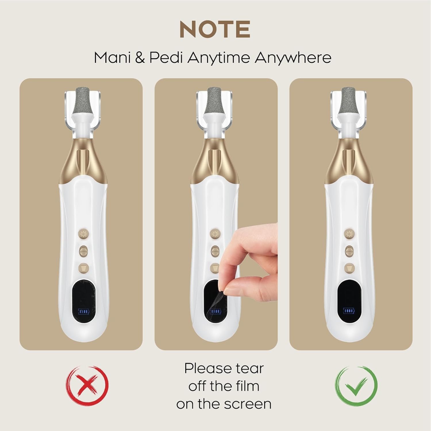 Powerful & Practical: Electric toenail clippers, 9 speed levels, 2 rotation directions, built-in LED light. Use low speed for soft skin and high speed for hard nails. The screen displays the current speed and battery level