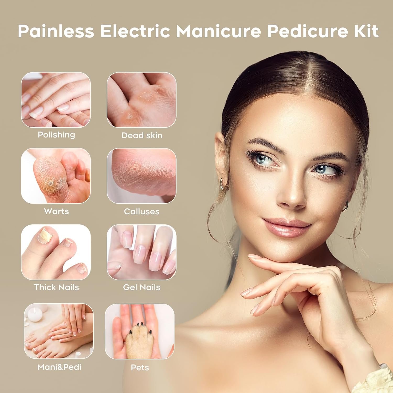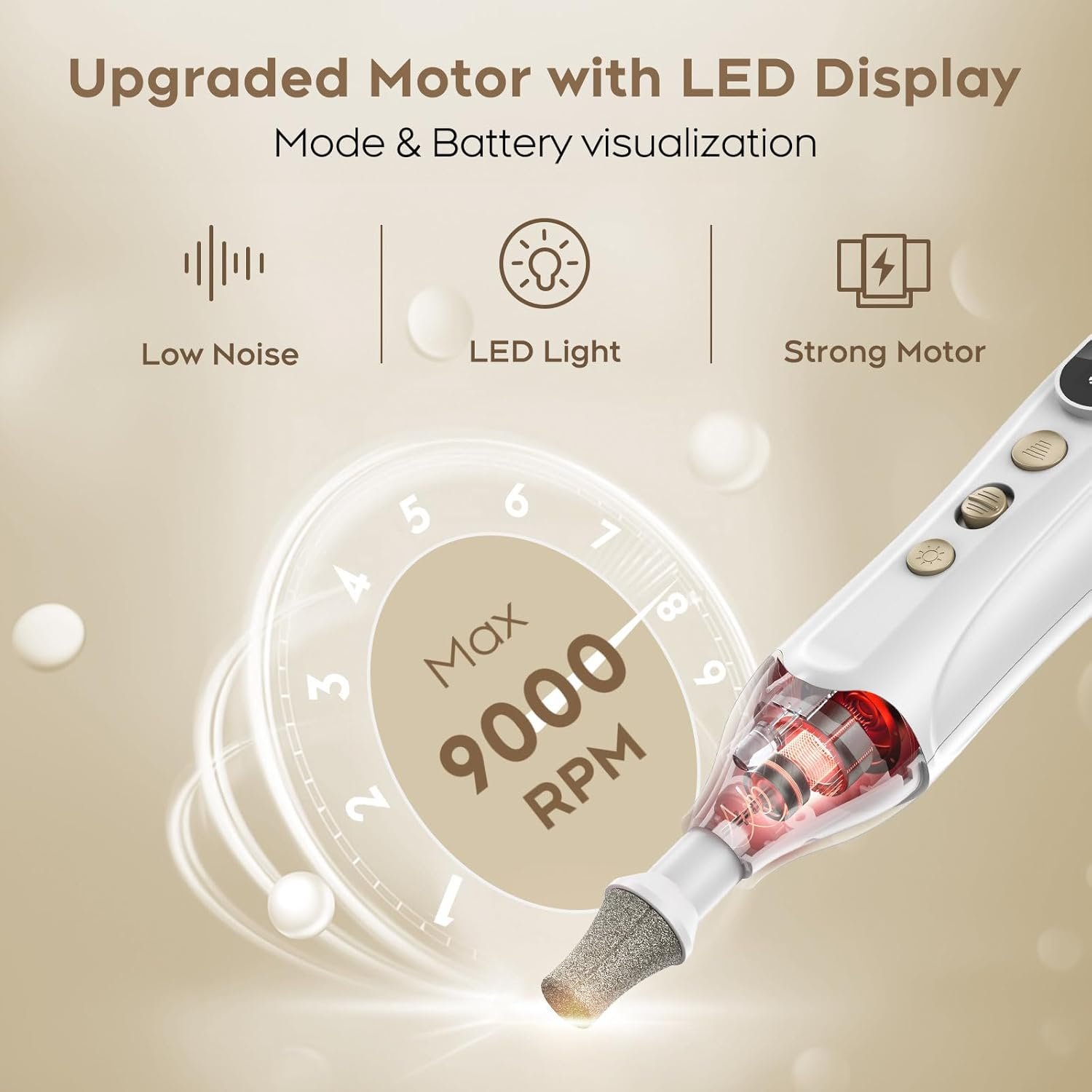Rechargeable & Cordless: Cordless nail drill, built-in rechargeable 2000 mAh lithium-ion battery, TYPE-C charging. Our electric cuticle trimmer also supports corded operation when the power runs out, good for traveling, gift for women