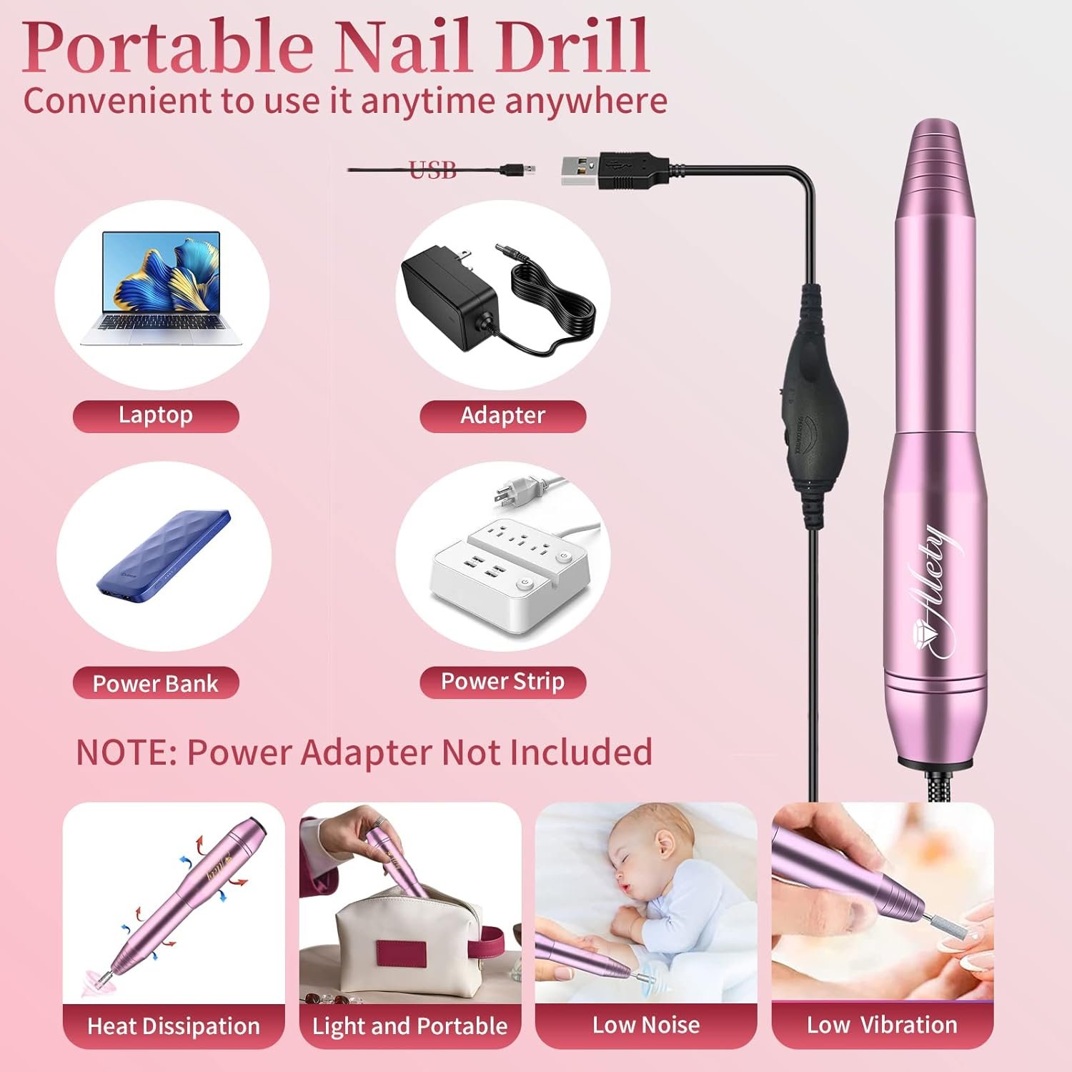 【Multifunctional Nail Drill Kit】The nail drill kit comes with nail filer electric, 6 pcs upgraded iridescent nail drill bits, 26 sanding bands, USB cable (not wireless and without adapter) which achieve any manicure you want. Perfect for salon and home carving creativity.