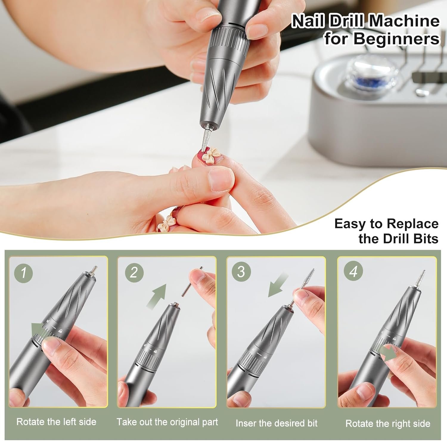 Professional Nail Drill Machine Set–Efile nail drill is designed for beginners and professionals, perfect for in and out of the salon and nail art DIYers, ideal for buffing nails, filing nail shapes, and smoothing calluses on hands and feet. Nail grinder is a perfect gift for wife, sister, daughter, mom, best friend, girlfriend or a gift for yourself.