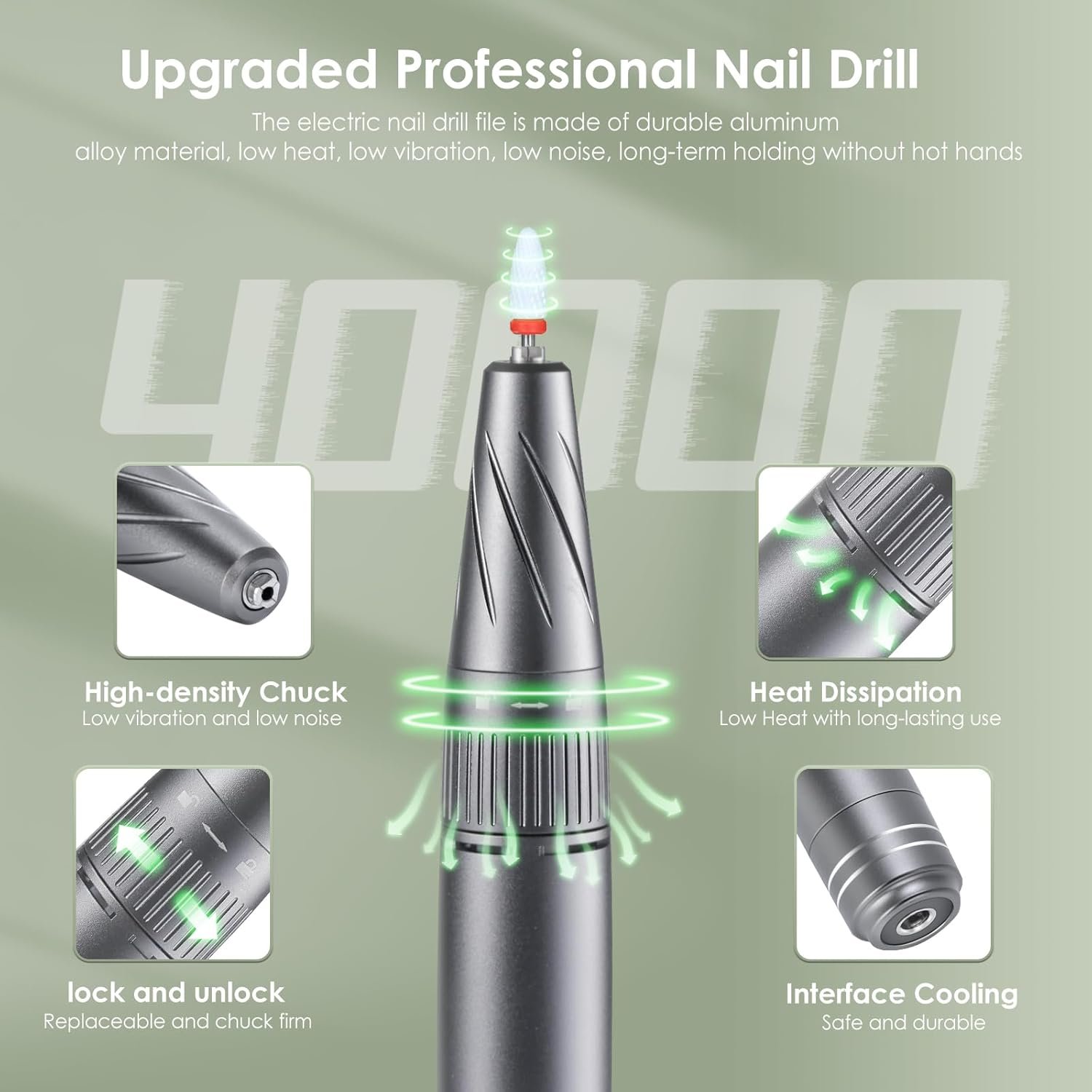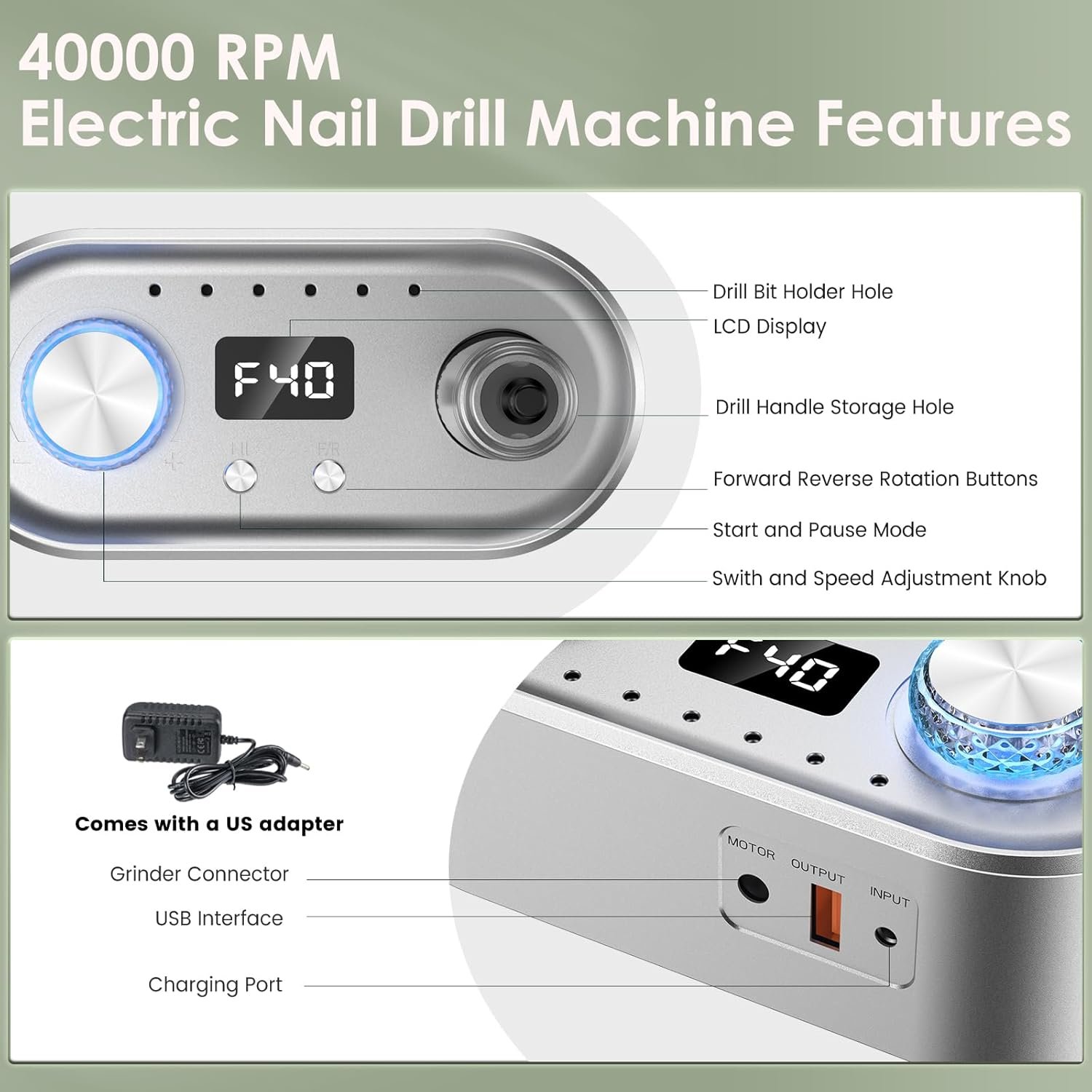 Works up to 40000 RPM to file, shape, or cut gel nails, acrylic nails and dip powder nails efficiently