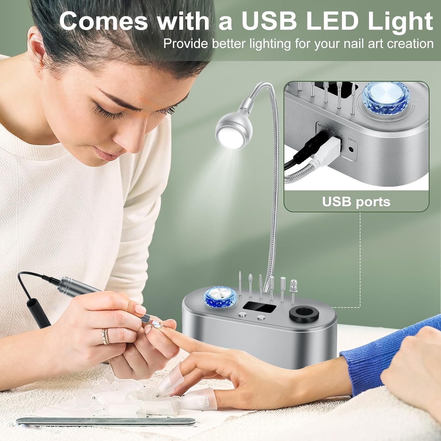 Convenient LED Lamp-PULENADRI nail filer electric comes with USB LED light and flexible metal gooseneck. The LED lights illuminate the tips from all angles to make it easier to create nail art.