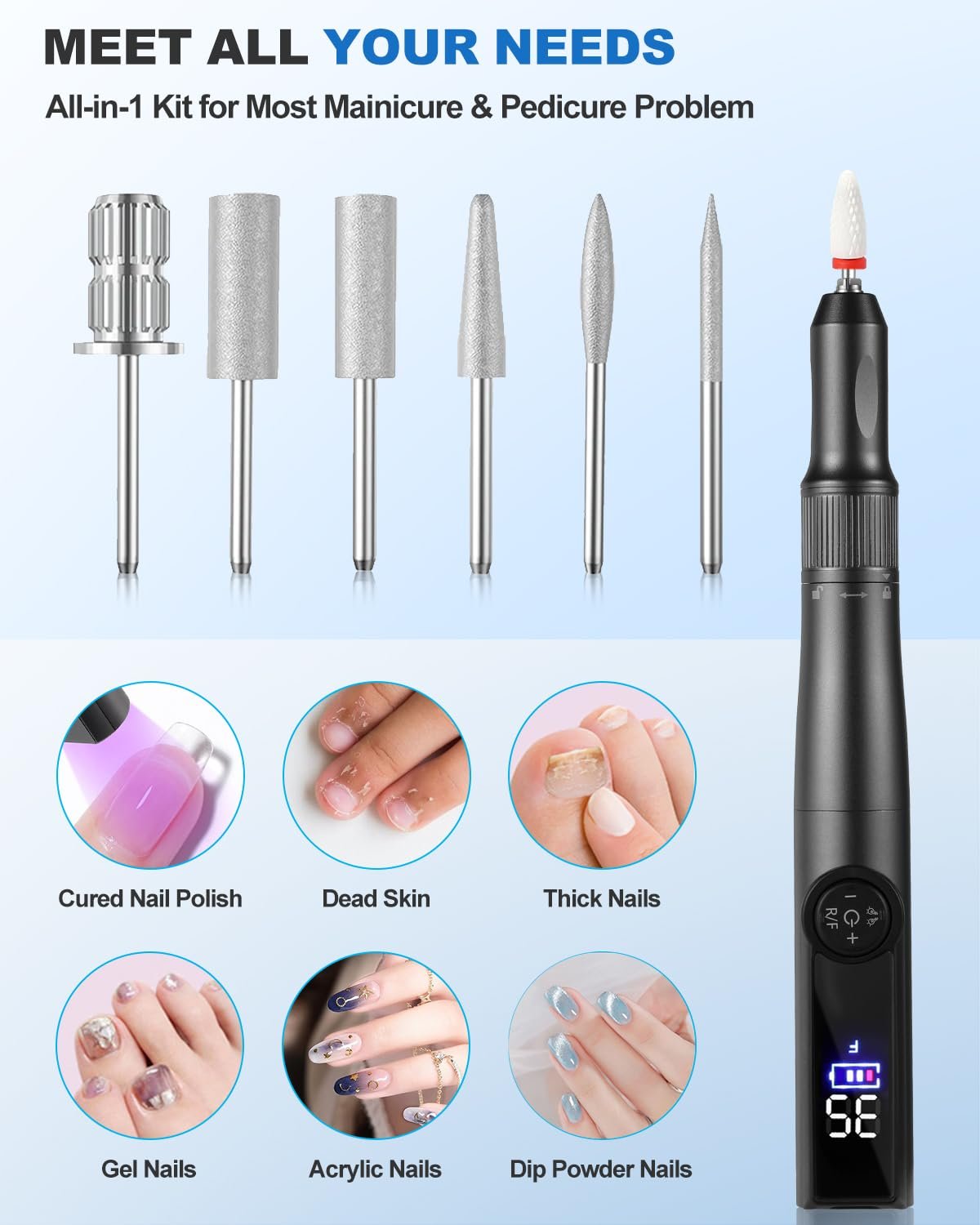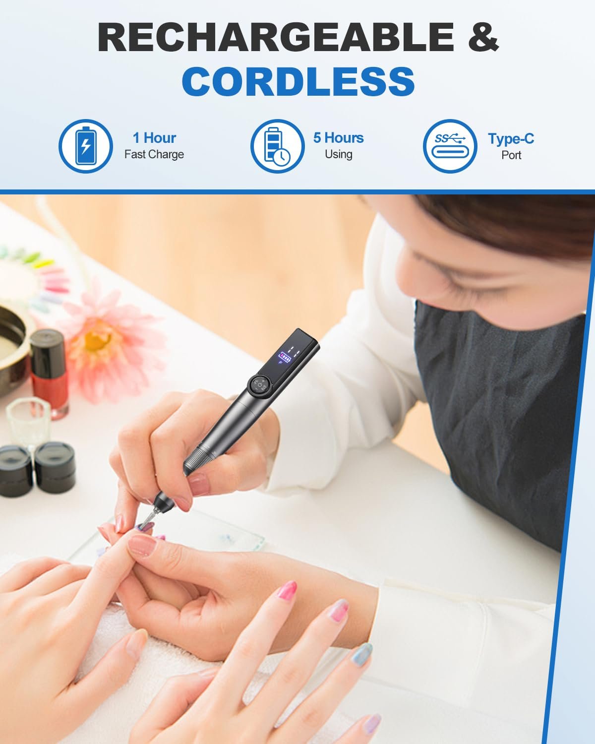 ๐‚๐จ๐ซ๐๐ฅ๐ž๐ฌ๐ฌ & ๐‹๐จ๐ง๐ -๐‹๐š๐ฌ๐ญ๐ข๐ง๐  ๐๐š๐ญ๐ญ๐ž๐ซ๐ฒ ๐‹๐ข๐Ÿ๐ž: Built in 1200mAh large capacity battery, featuring Type-C USB charging for a full charge in ๐Ÿ ๐‡๐จ๐ฎ๐ซ and up to ๐Ÿ“ ๐‡๐จ๐ฎ๐ซ๐ฌ. Just say goodbye to annoying cord tangles and enjoy the freedom of wireless operation with our nail drill machine without space and time litimited