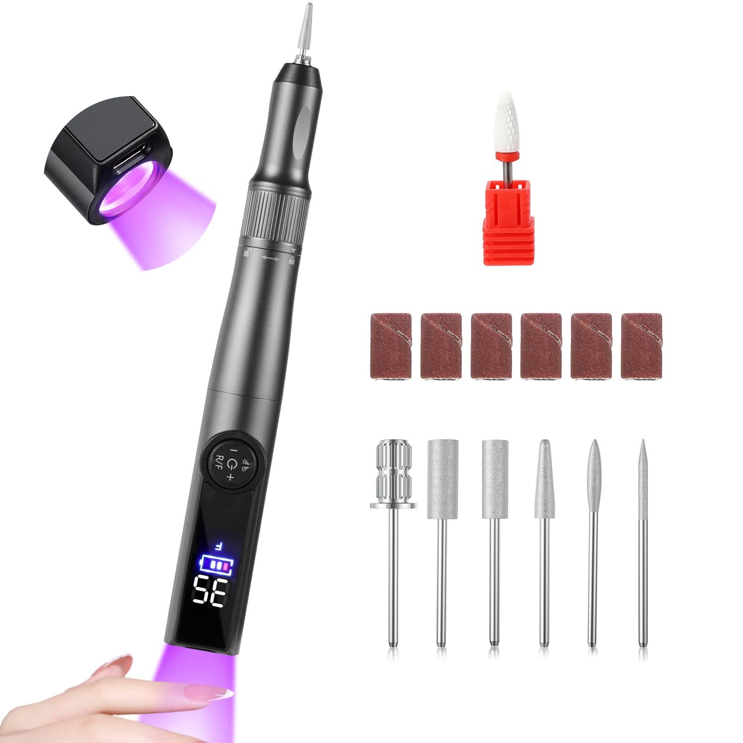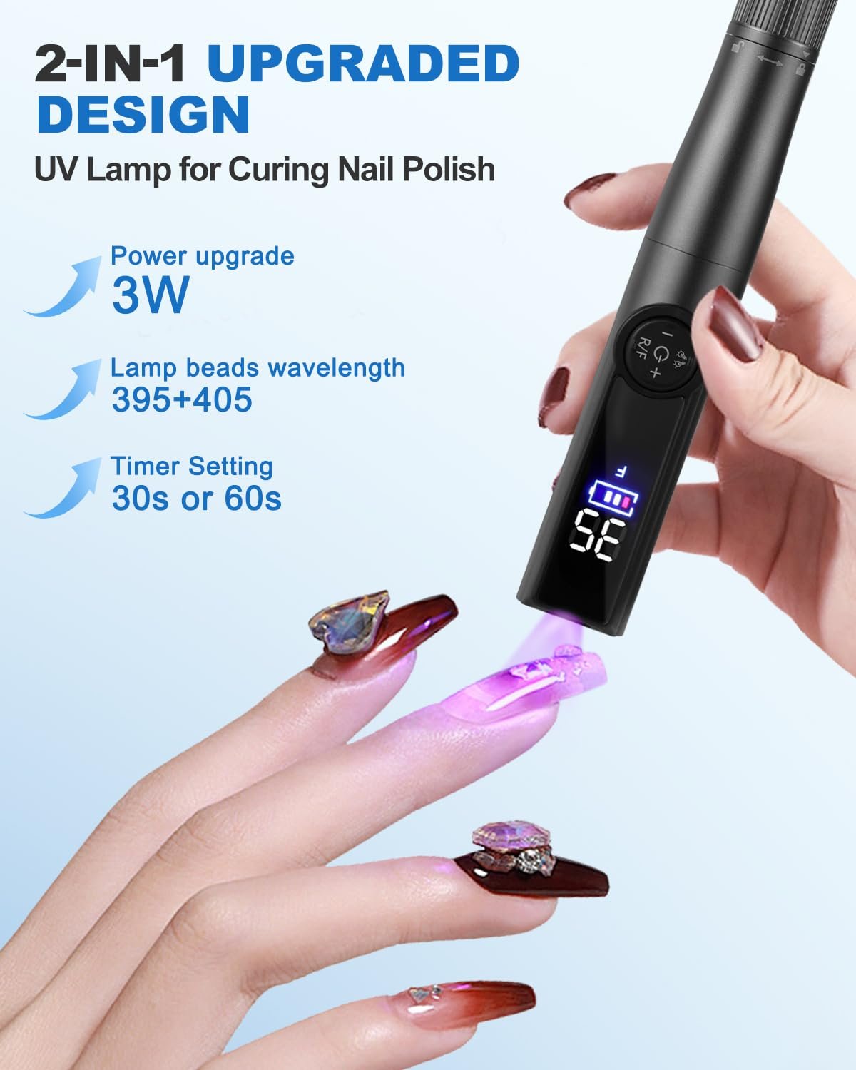 Electric Nail Drill with UV Nail Light 2 in 1 Combo, 35000RPM Cordless Nail Drill with LCD Screen, Rechargeable Electric Nail File with 7 Bits Portable Nail Drill Kit for Gel Curing Polish & Remove