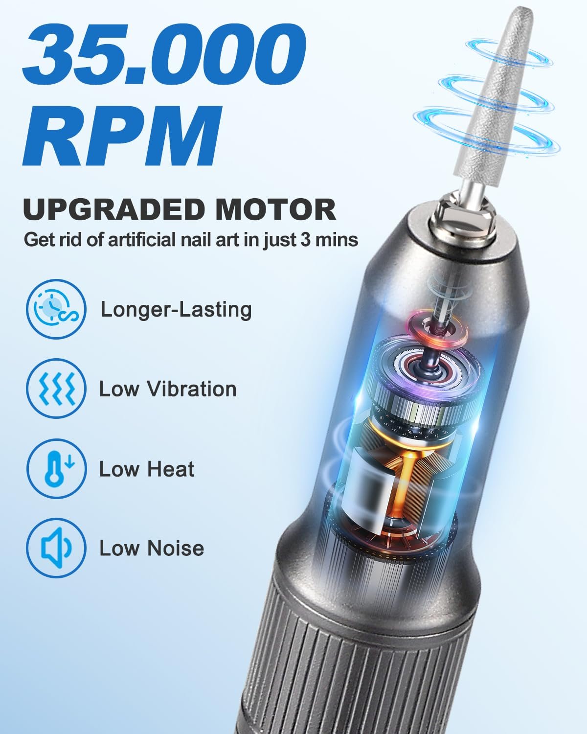 ๐‡๐ข๐ ๐ก ๐’๐ฉ๐ž๐ž๐ & ๐„๐Ÿ๐Ÿ๐ข๐œ๐ข๐ž๐ง๐ญ ๐‡๐ž๐š๐ญ ๐ƒ๐ข๐ฌ๐ฌ๐ข๐ฉ๐š๐ญ๐ข๐จ๐ง: Meremit professional nail drill equipped with an updated high-quality bearing cordless motor and a unique ventilation system motor bearing, ensuring smooth operation even at high speeds (up to ๐Ÿ‘๐Ÿ“,๐ŸŽ๐ŸŽ๐ŸŽ ๐‘๐๐Œ), ๐‹๐จ๐ฐ ๐‡๐ž๐š๐ญ, ๐‹๐จ๐ฐ ๐๐จ๐ข๐ฌ๐ž and ๐‹๐จ๐ฐ ๐•๐ข๐›๐ซ๐š๐ญ๐ข๐จ๐ง. Allowing you to achieve stunning manicures and pedicures effortlessly at home