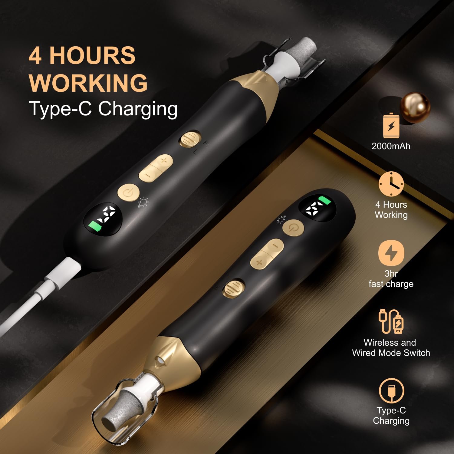 80% More Usage Time: Equipped with a rechargeable battery, the PANUSU nail drill offers up to 4 hours of continuous use on a full charge. Enjoy the convenience of cordless operation, or plug in for continuous power with the wired mode—ensuring your device is always ready for use, whether at home or on the go.