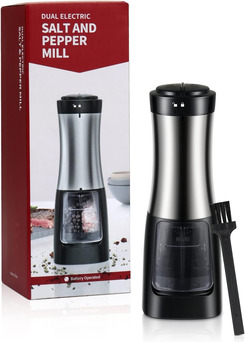 Unique Design: The clear acrylic material (BPA free) on the bottom allows you to see the remaining spices in the two loading slots, making it easy to distinguish the spices in the grinder. It comes with a utility brush that can easily clean the top of the grinder.