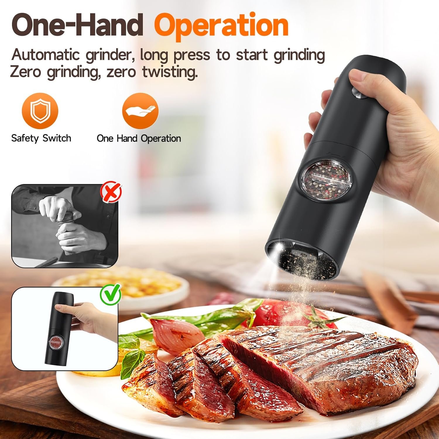 GEGATE electric salt and pepper grinder set also make fantastic kitchen gadgets gifts. Whether it’s for housewarmings, weddings, or any special occasion, they are sure to impress any culinary enthusiast. Elevate your cooking experience with our 2 Pack Electric Salt and Pepper Grinder Set.