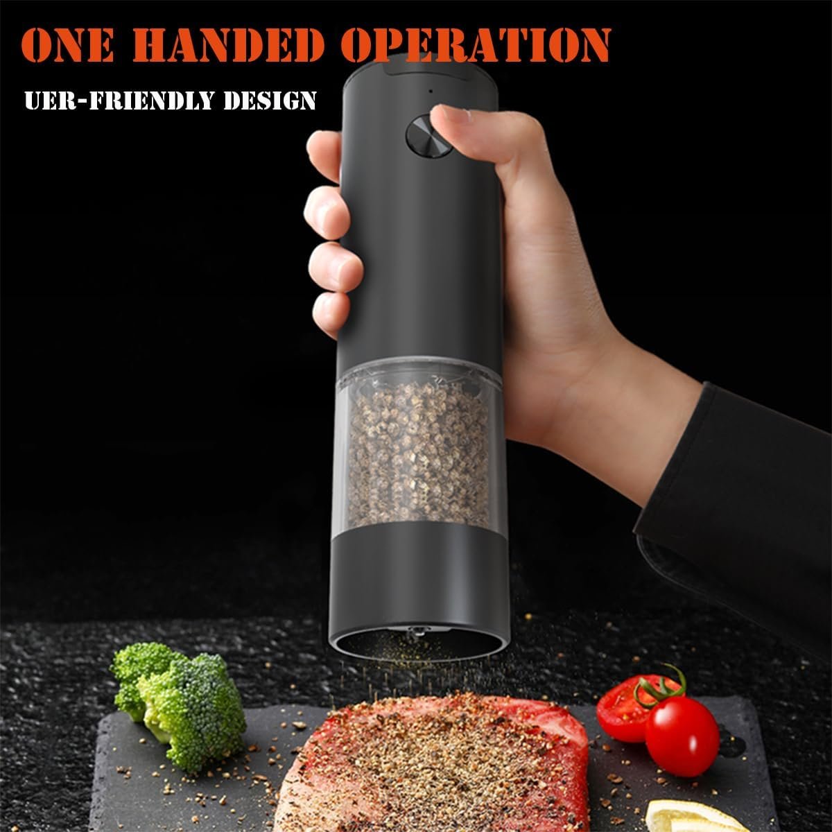 ONE-HAND OPERATION with LED LIGHT: Our electric salt and pepper grinder set is designed with convenience in mind. With the built-in LED light, you can easily see how much salt or pepper you have added to your dish even in low light conditions.