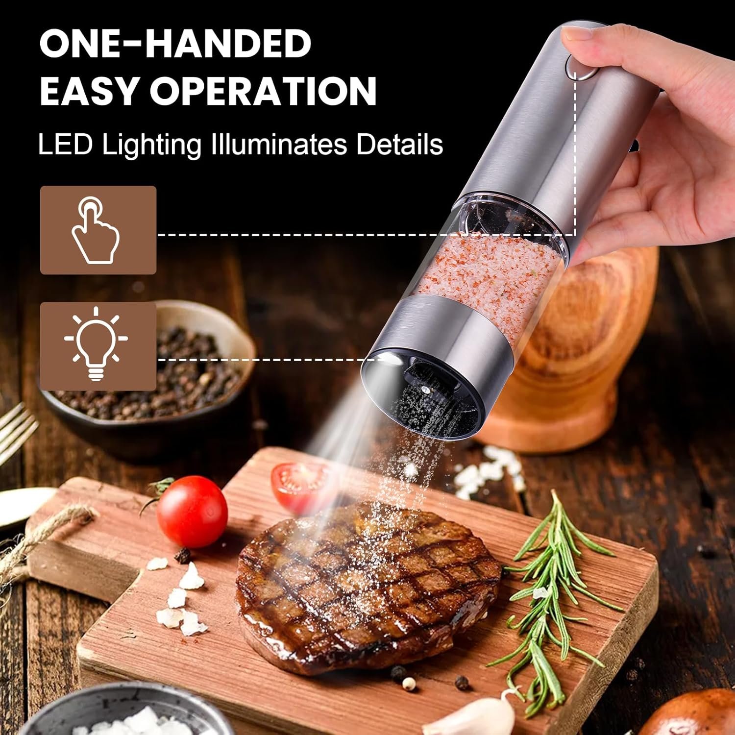 【5-LEVEL ADJUSTABLE DIAL】The rechargeable salt and pepper grinder set features a high-hardness and wear-resistant grinding core, which can maximize the original flavor of the spices, and the 5 adjustable grinding coarseness settings allows to meet different cooking needs