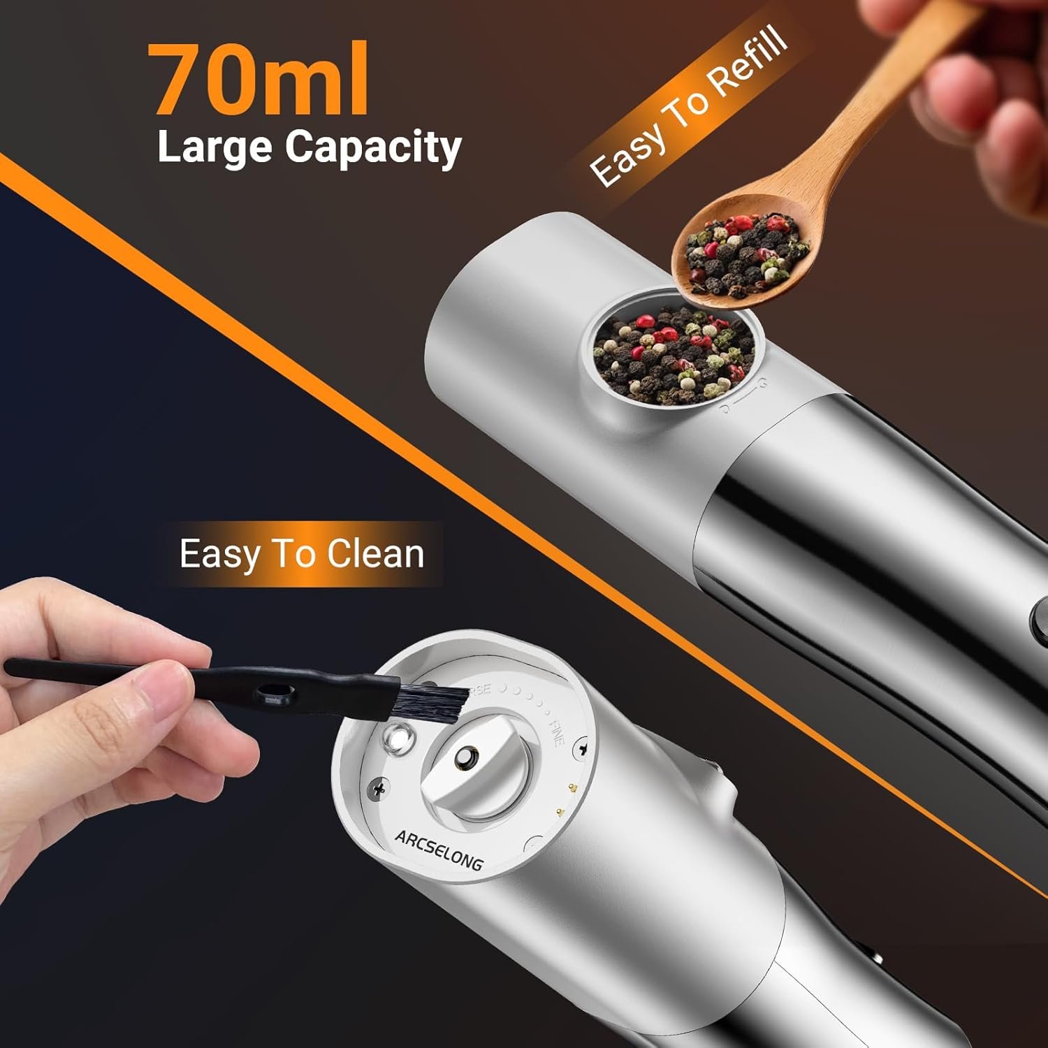 Clear Spice-Level Window 🌟: Our grinders boast a transparent viewing window, adding a sprinkle of sophistication to your kitchen decor. This practical design element allows you to keep an eye on spice levels while adding a touch of elegance to the unit. It’s not just a grinder; it’s a statement piece that celebrates your passion for cooking and style.