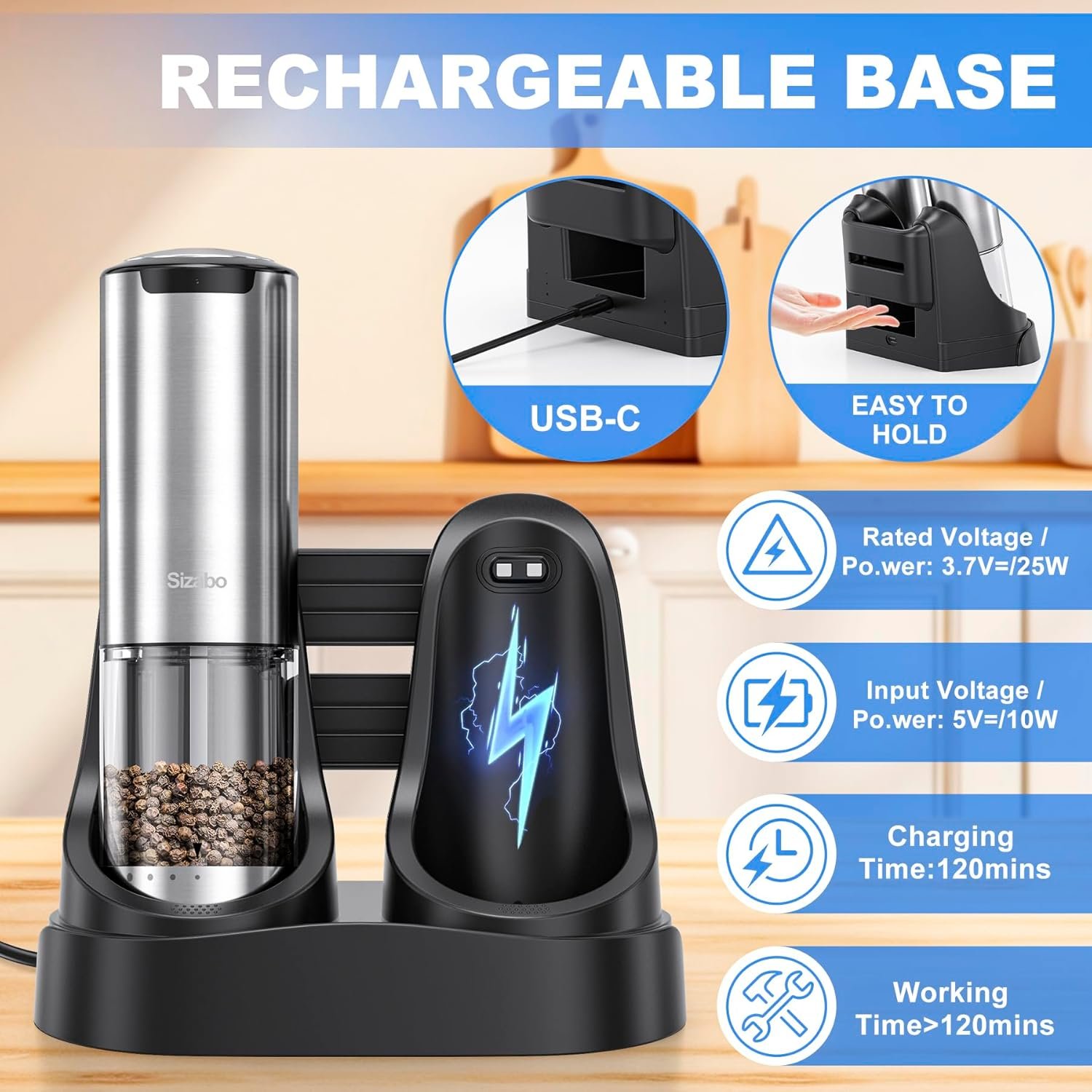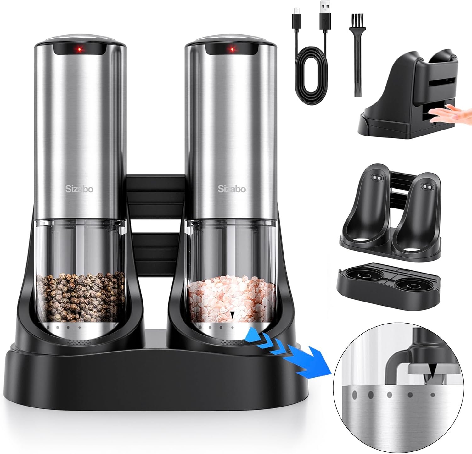 Sizabo upgraded electric salt and pepper grinder is very easy and convenient to use, the operation steps are as follows: