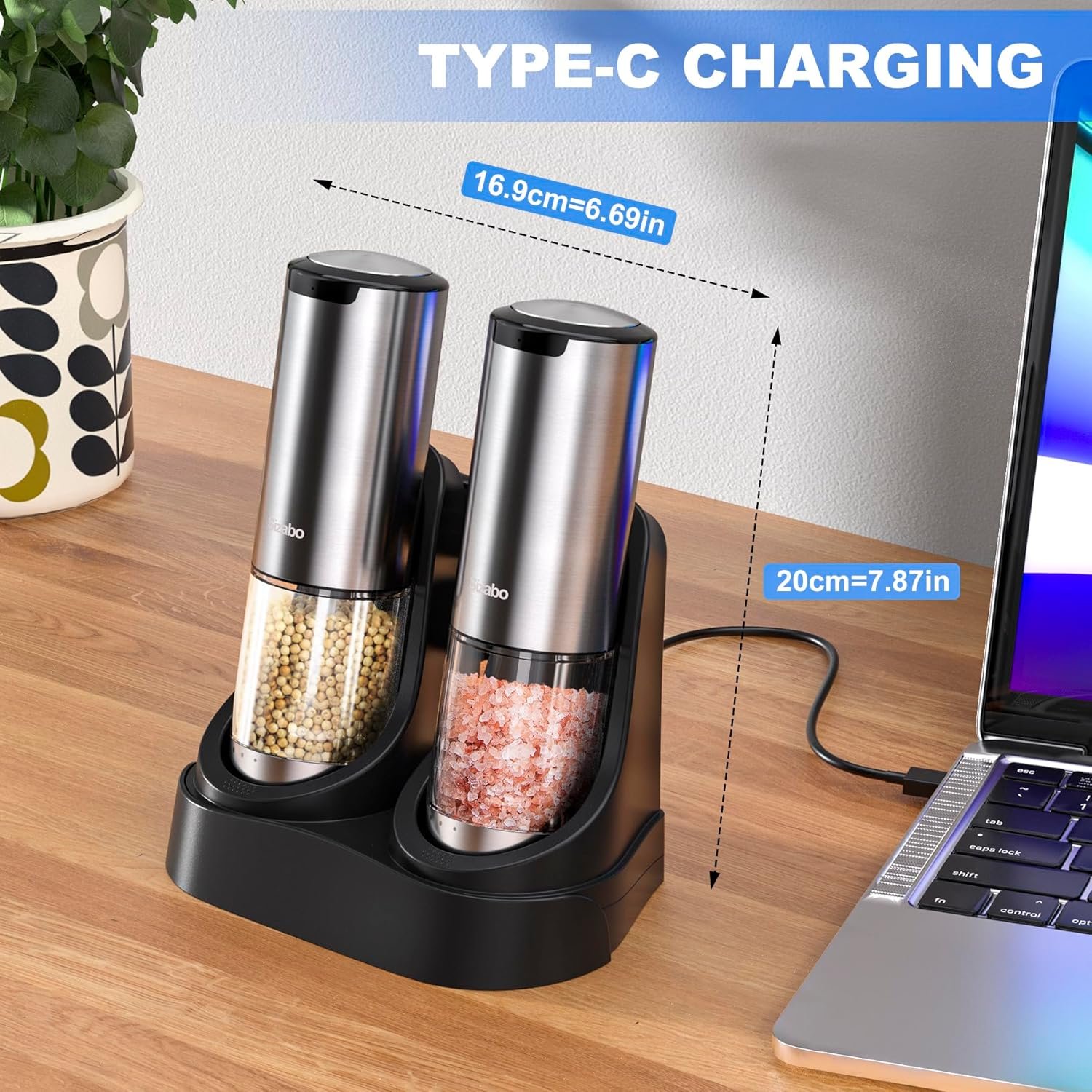 This upgraded electric salt and pepper grinder features a newly designed charging base, which is convenient for charging and can be used as a solid base on its own, making your kitchen operations more convenient. In addition to maintaining an efficient and precise grinding function, the upgraded charging base reduces the hassle of battery replacement and keeps you fully charged at all times. Its stylish look and practicality make it ideal for enhancing your kitchen experience.