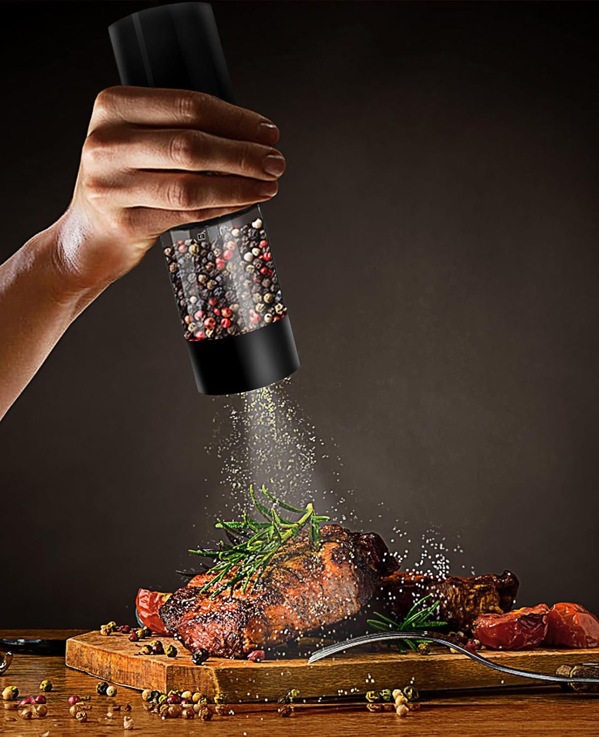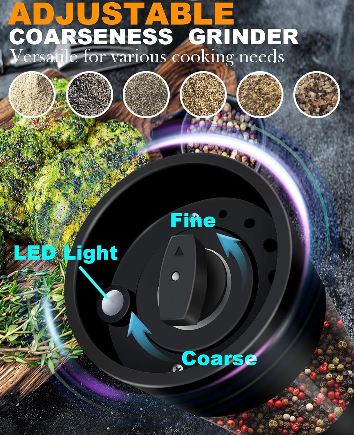 ADJUSTABLE COARSENESS AND ONE-HANDED OPERATION – By turning a button on the bottom, the pepper grinder can adjust the coarseness or fineness to suit different types of food and textures. It can also be operated with one hand, making it easy and convenient to use.