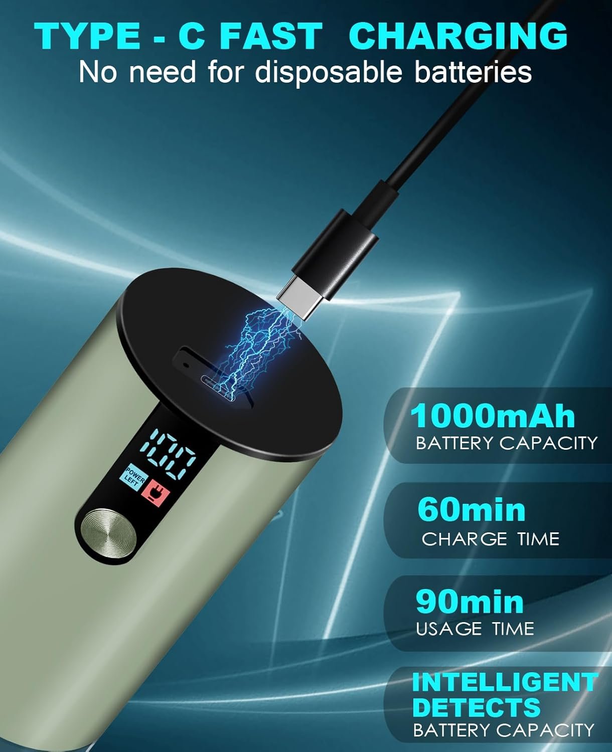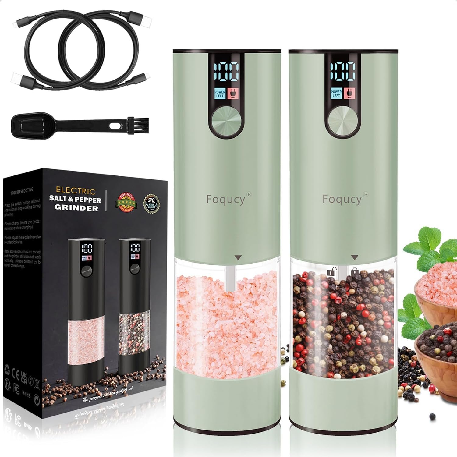TYPE-C QUICK CHARGE – The pepper and salt grinder utilizes a rechargeable design with an increased battery capacity of 1000mAh for extended use without the need for additional disposable batteries.