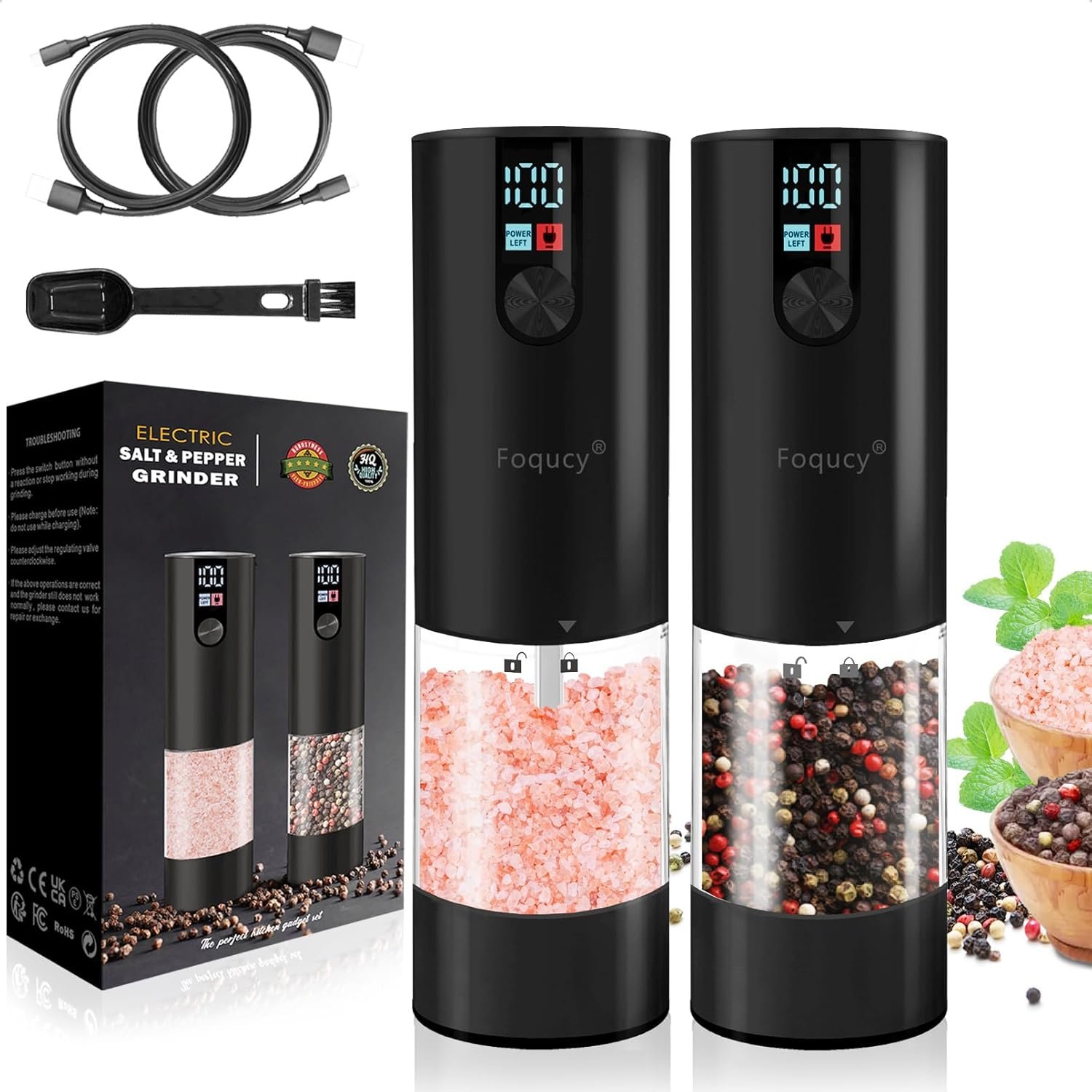 UNIQUE DESIGN – Our pepper and salt grinder set features the latest battery level monitoring design. The digital display detects the remaining battery capacity in real-time, informing you of the battery level after each use. This ensures that you won’t be unable to use it when the battery is low next time.