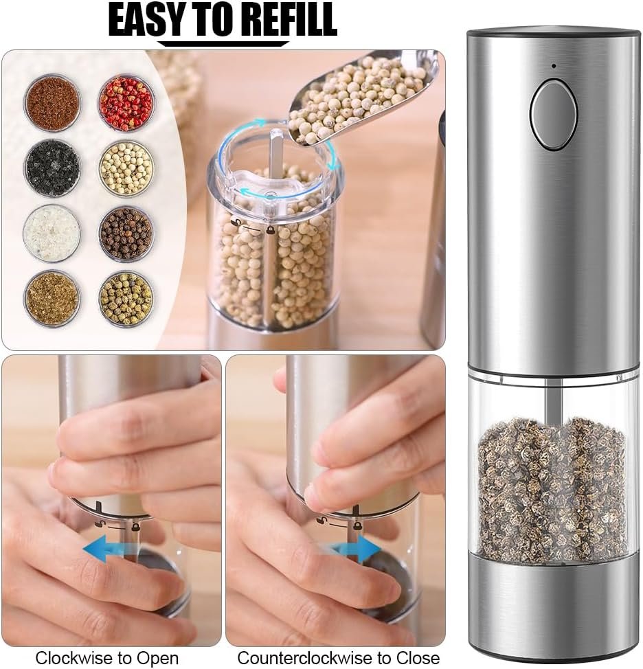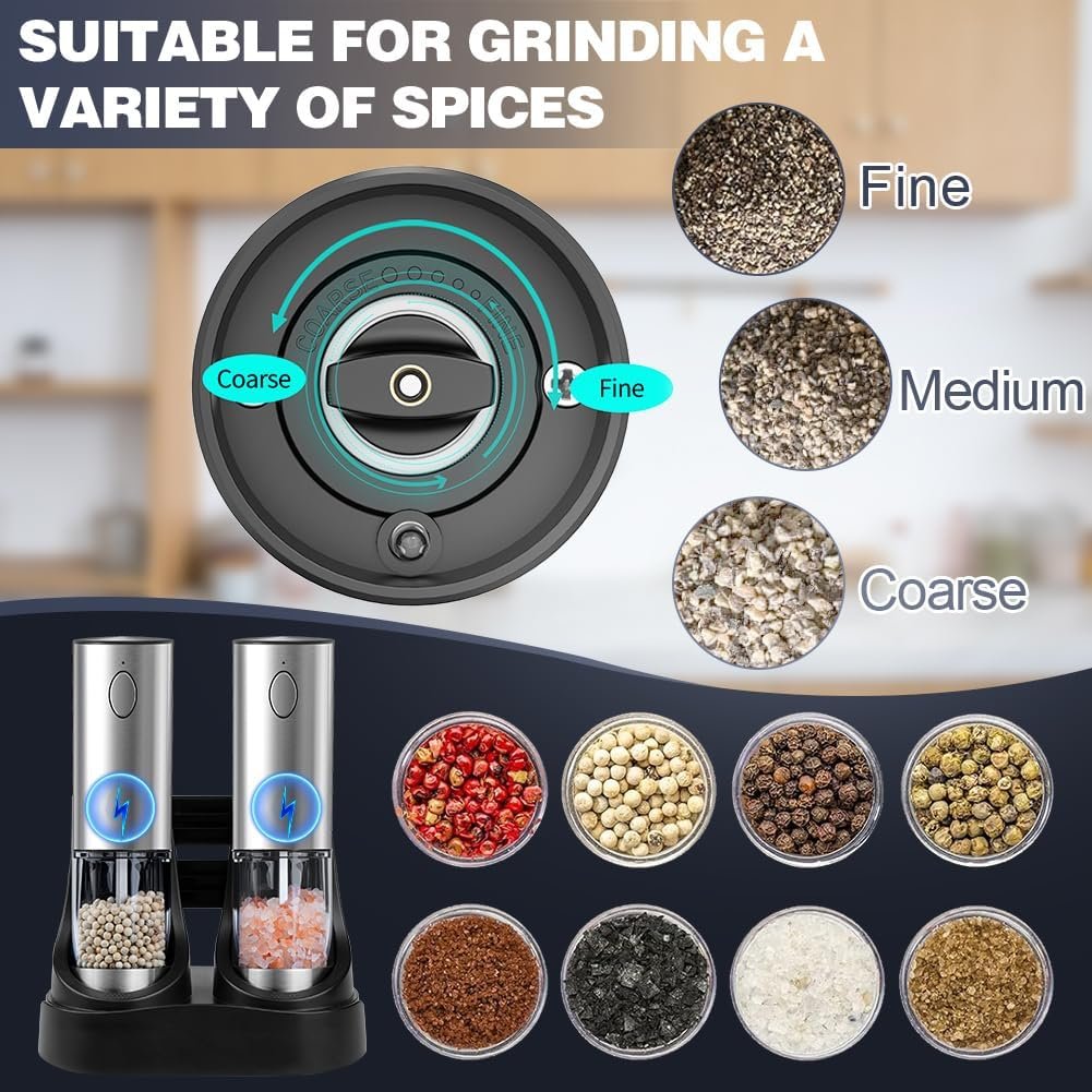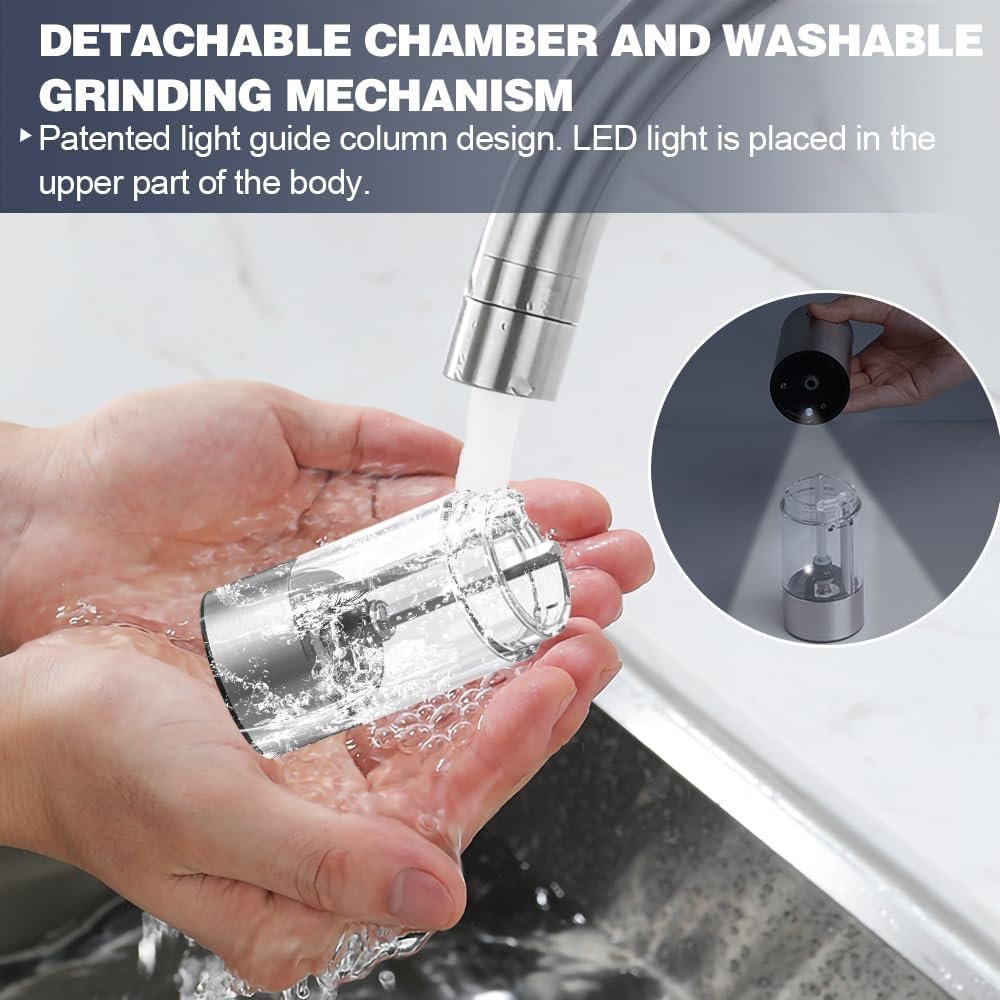 【Washable Grinding Mechanism for Easy Cleaning】This innovative automatic salt and pepper grinder set features a PATENTED light guide column. The lower half is detachable and easy to clean, making maintenance a breeze.