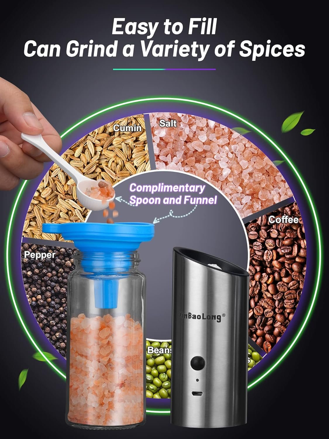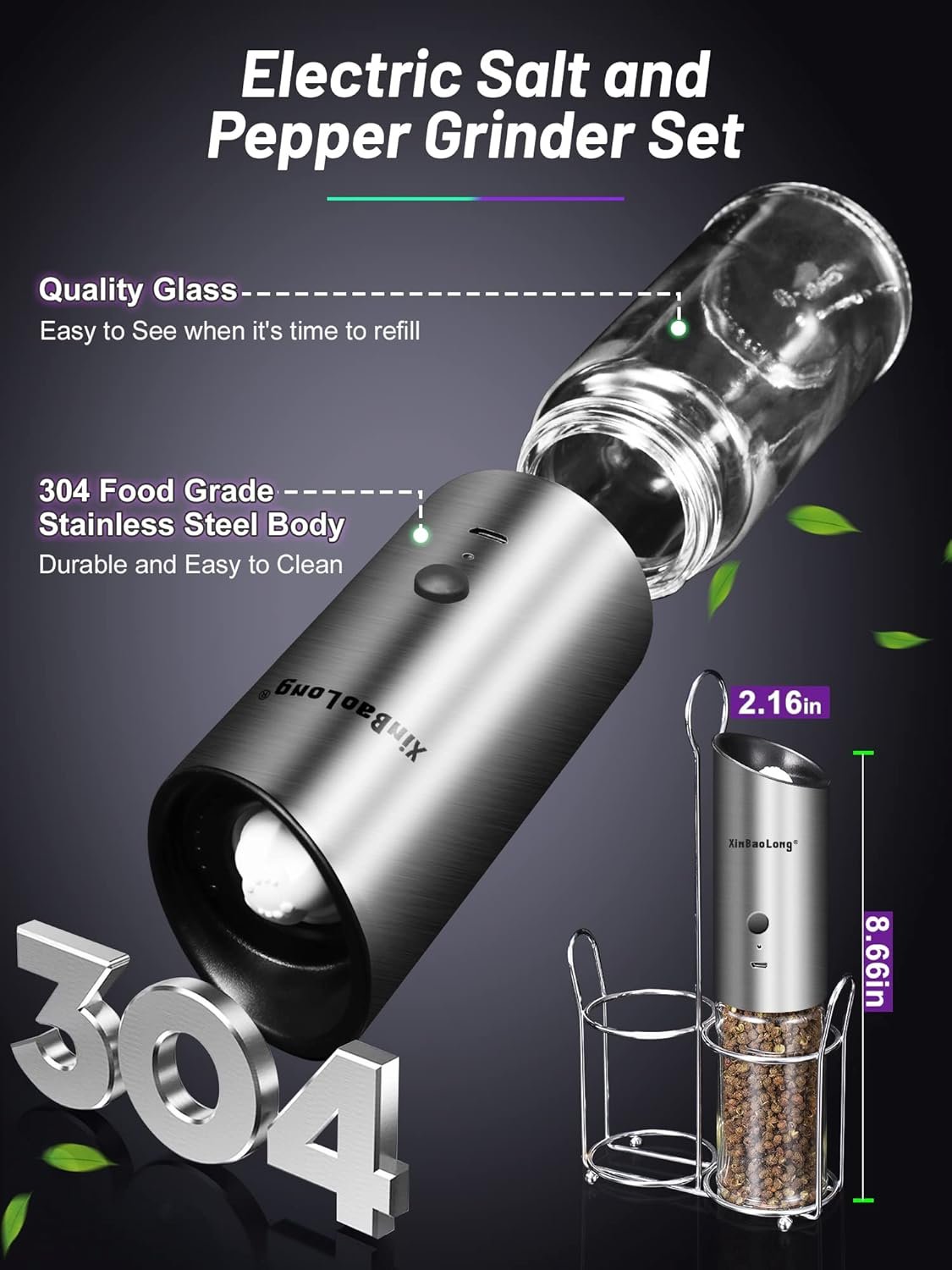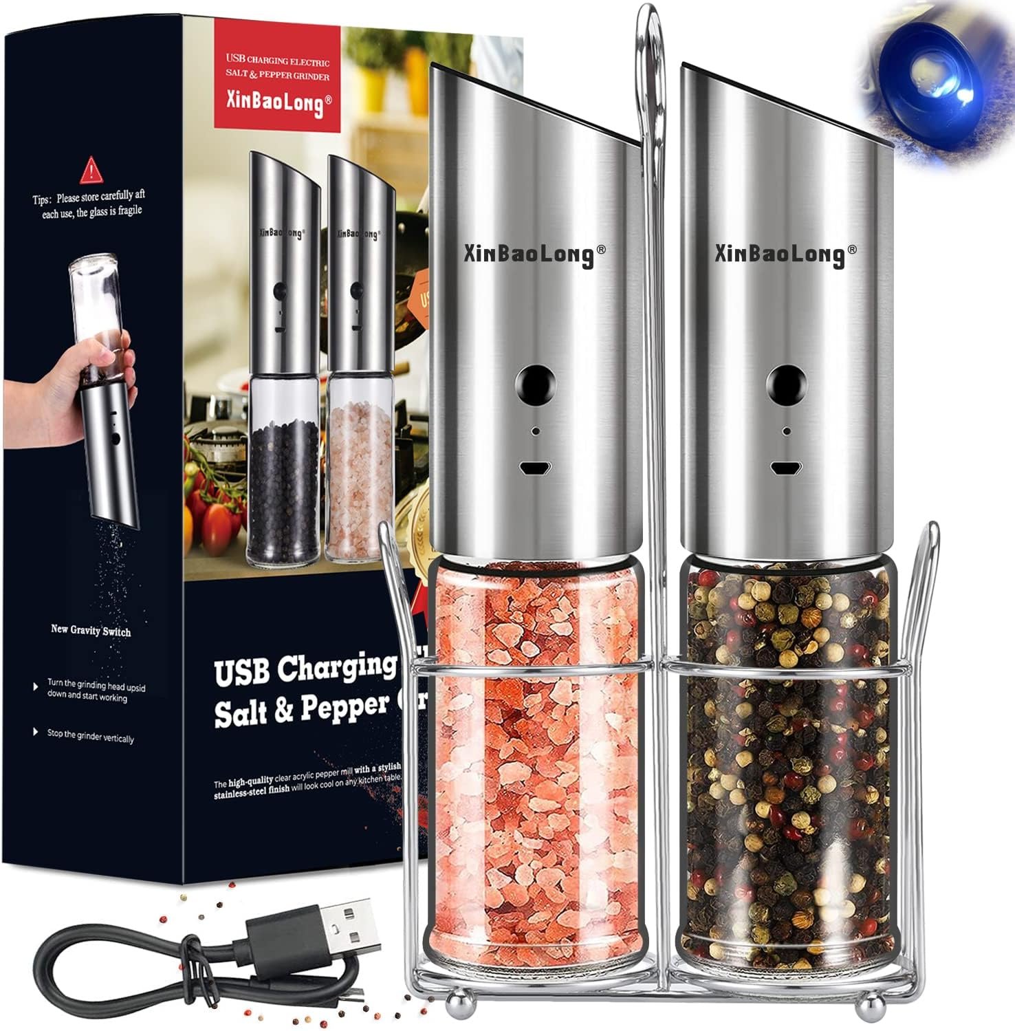 XinBaoLong Rechargeable Electric Salt and Pepper Grinder Set