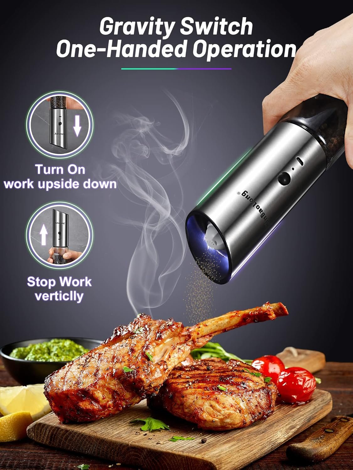 【Easy to Use&Gravity Operation】The electric salt and pepper grinder is gravity activated, Just simply turn it upside down to get fresh salt or pepper. Reduces pain in your hands,compares to manual salt and pepper grinder set。Convenient,which is the kitchen must haves and kitchen gadgets.It is very suitable for gathering with family and friends, having a picnic, etc, and is convenient to carry.