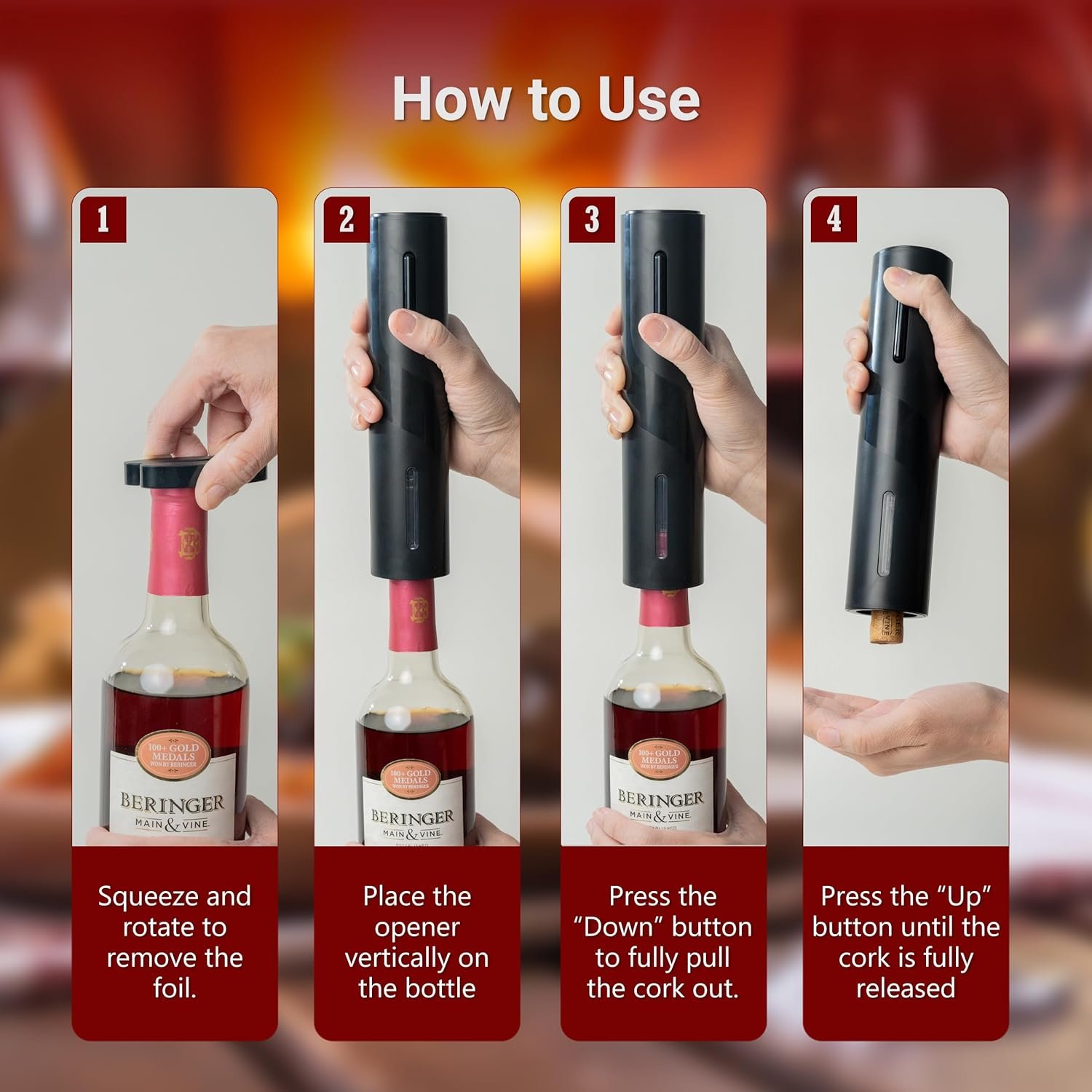Note: Please charge your wine bottle opener every three months when not in regular use.