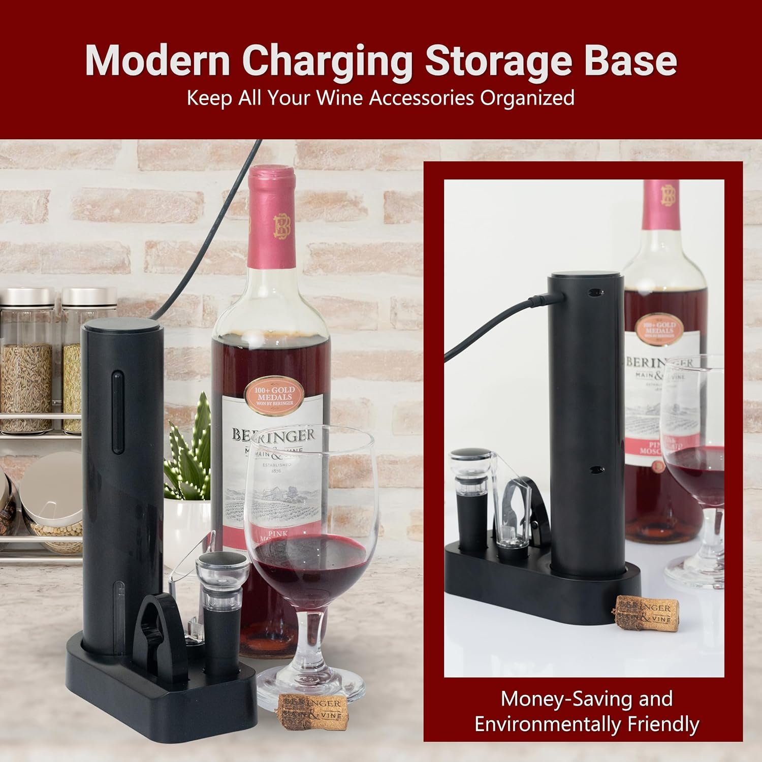 [Convenient Storage and Charging]: A single charge of about 2 hours can open 30-40 bottles. No need for batteries! The built-in charging storage stand provides a space-saving solution to keep your wine opener and accessories organized and ready for use. The sleek design of the electric corkscrew wine opener adds a modern touch to any kitchen or bar, making it both functional and attractive.