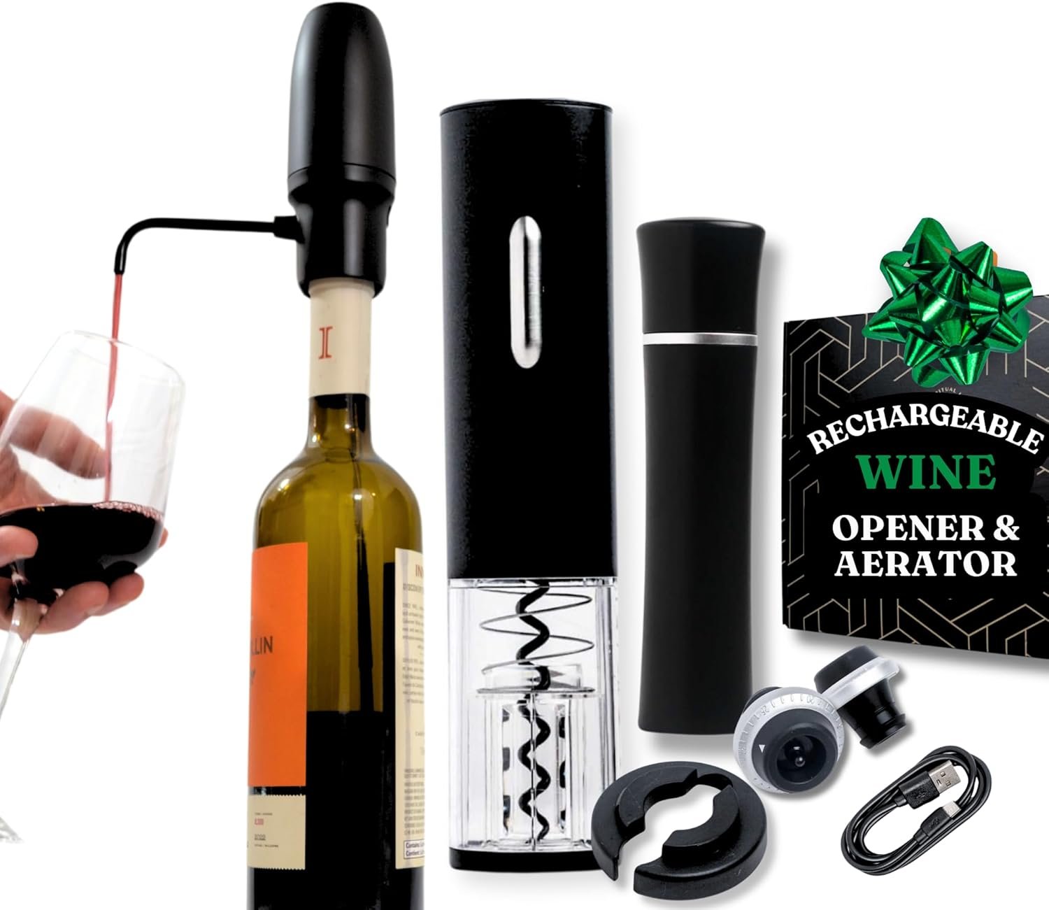 Electric Wine Bottle Opener Rechargeable – Electric Wine Opener and Wine Aerator Set – Wine Dispenser Opener Set – Wine Sets Gifts for Men – Wine Accessories Gifts