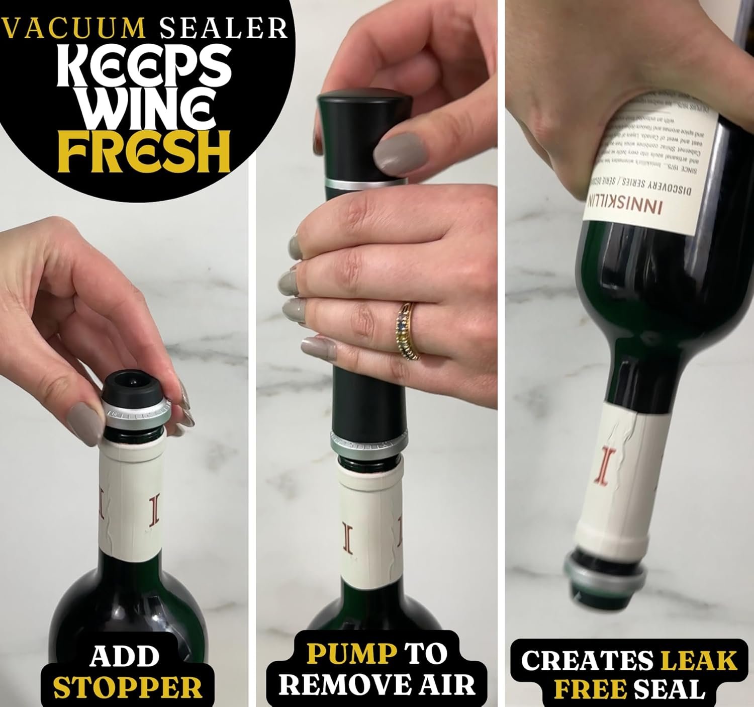 REUSABLE VACUUM STOPPERS: A practical and innovative solution to preserve the freshness of opened wine bottles. Made of advanced food-grade silicone. With a few pumps, it removes excess air from the bottle, preventing oxidation and preserving the wine’s flavor for a longer duration.