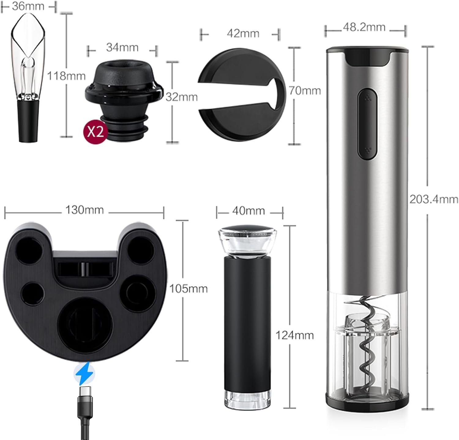 🍷[THE PERFECT GIFT] Searching for the ideal gift for a wine-loving partner, friend, or client? Look no further! This Electric Wine Opener Set comes in a beautifully printed box, making it a perfect present. They’ll love the practicality and elegance of the set, and you’ll be remembered for your excellent taste.