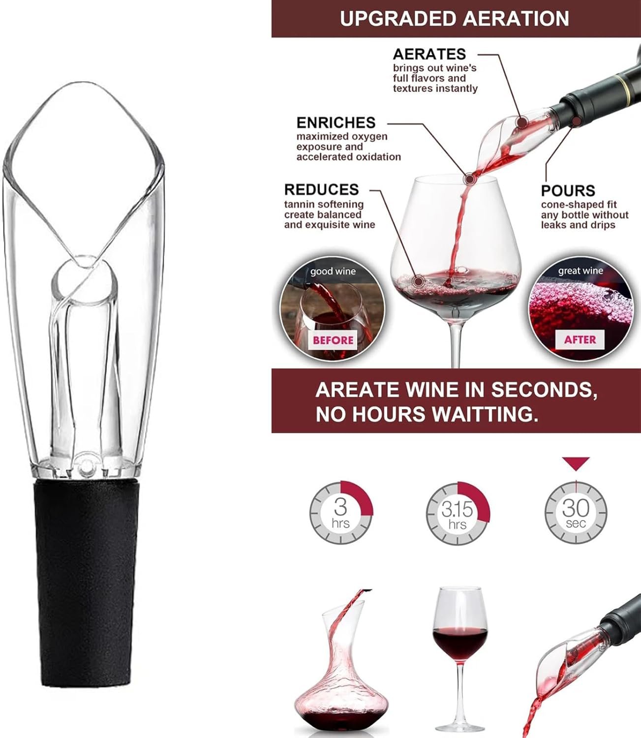 🍷[PERFECT AERATION ON-THE-GO] Want to let your wine breathe without a bulky decanter? Our set includes a handy bottle-top aerator that ensures your wine breathes properly, enhancing its flavor instantly. Just pour and enjoy!