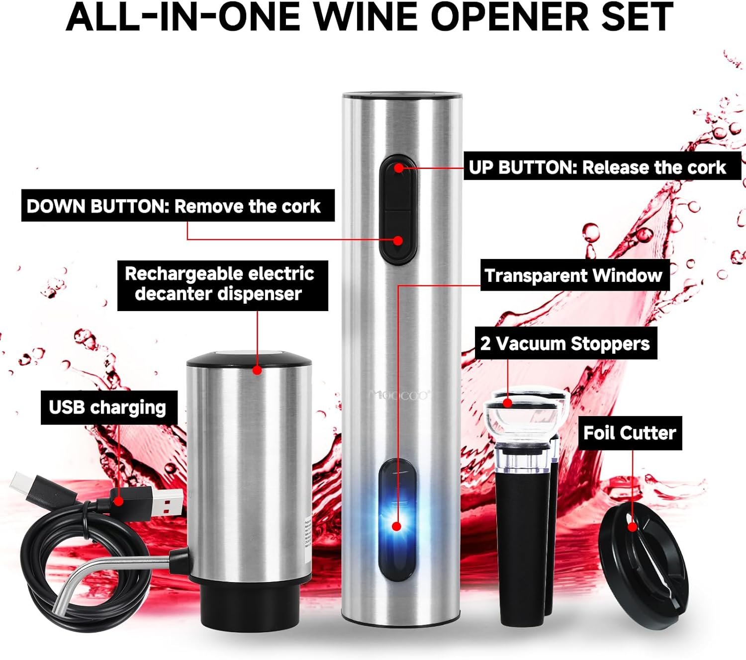 Moocoo All-in-One Electric Wine Opener Gift Set Fantastic for wine lovers!