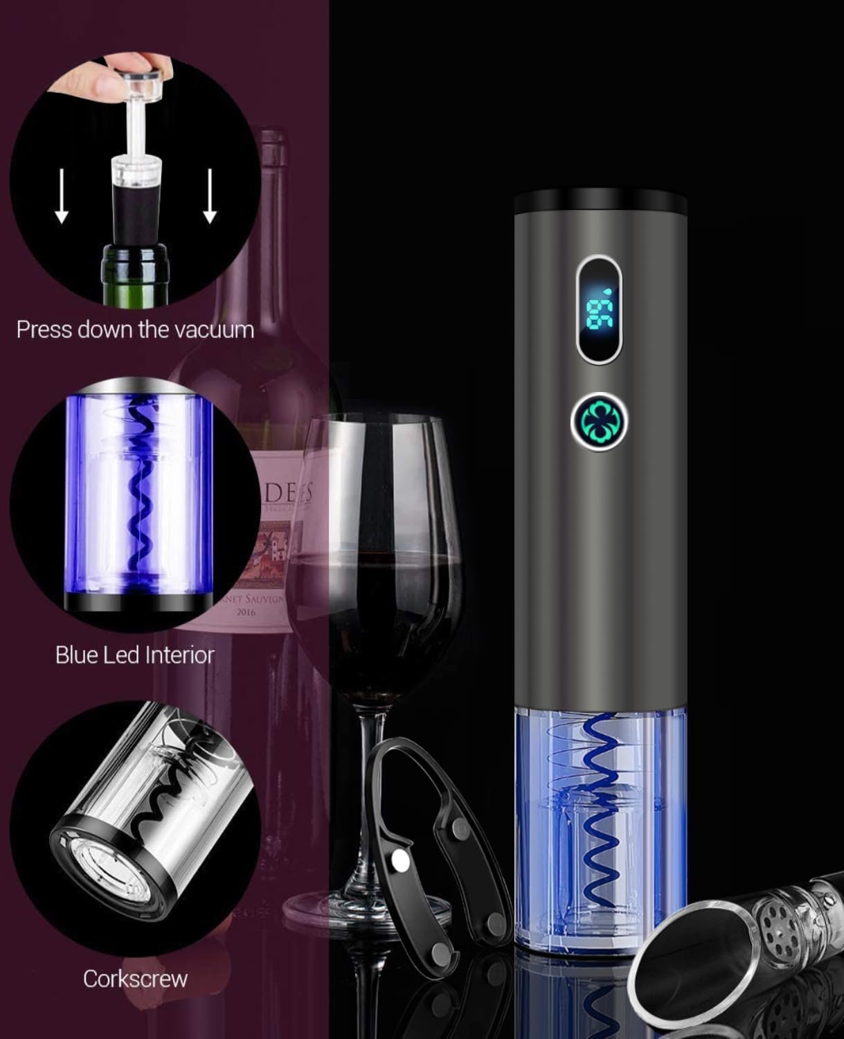 🍷Type-C Fast Charging:Upgraded Type-C fast charging technology allows the electric bottle opener to be fully charged in less than half an hour. Turn off the power protection switch even if you don’t use it for half a year, the battery power will not be lost to solve your charging troubles. Note: Before charging, you must turn on the main switch to start charging.