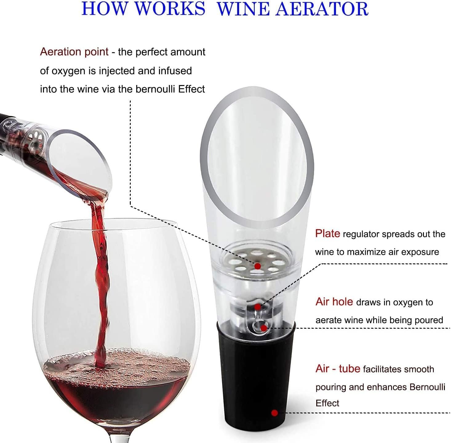 🍷ENJOY ELEVATED FLAVORS – Indulge in premium wine goodness with every sip. With the included 2-in-1 aerator and pourer, you can effectively infuse oxygen and achieve a more enhanced flavor profile while pouring, and can prevent dripping and control the flow.