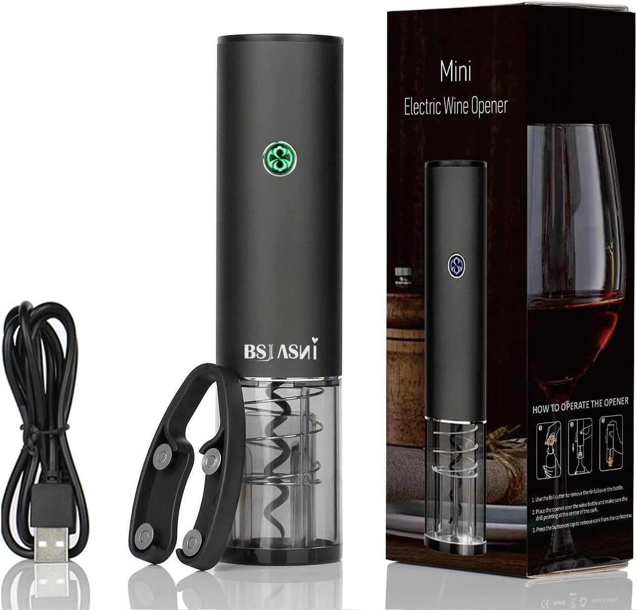 Upgraded Design with New Technology:Highly cost-effective,it helps you same much money and time!Efficient&Powerful Motor:Fast Open in seconds effortlessly.Perfect for red, white, roséwine, beer, champagne, and others.Built-in Lithium Battery:Charing the wine opener for 3-4 hours before use,you can open up to 60 bottles.Novelty and Portable Design:Designed in small volume,easy and protable to carry.BSJ-1002-Specification: