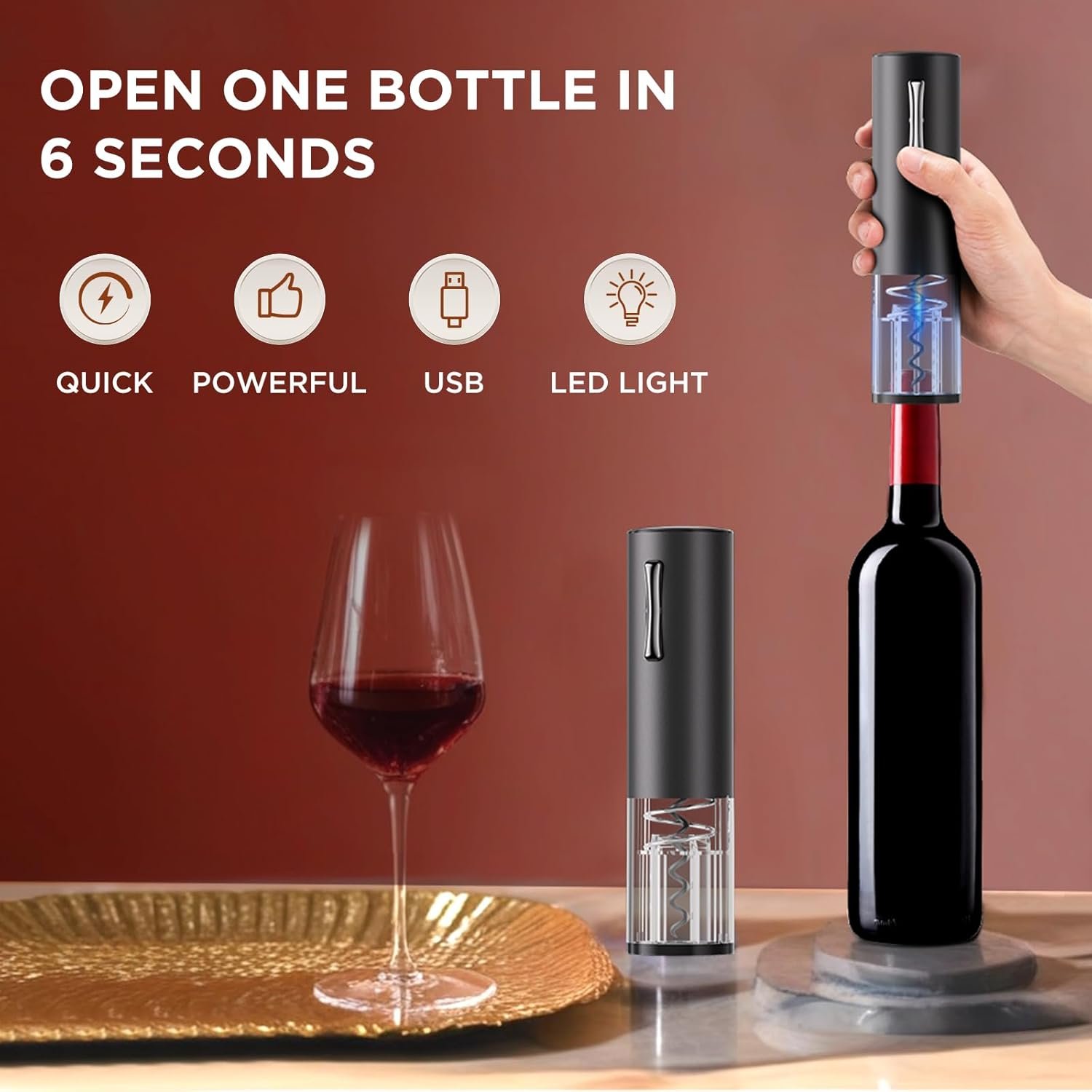 [All-In-One Wine Experience] Indulge in the ultimate wine opening ritual with our electric wine bottle opener set. This set has it all – from aerator and pourer to foil cutter and vacuum stoppers, ensuring a smooth and enjoyable wine tasting every time
