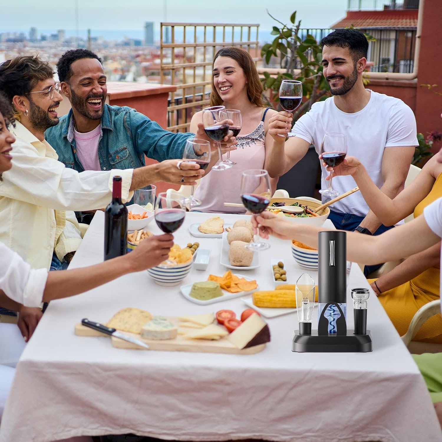 [Upgrade Your Wine Experience] Elevate your wine tasting with our electric opener set. The included aerator and pourer enhance the taste by oxygenating your wine, while the 2 vacuum stoppers keep it fresh for future enjoyment. Perfect for home, events, or as a gift