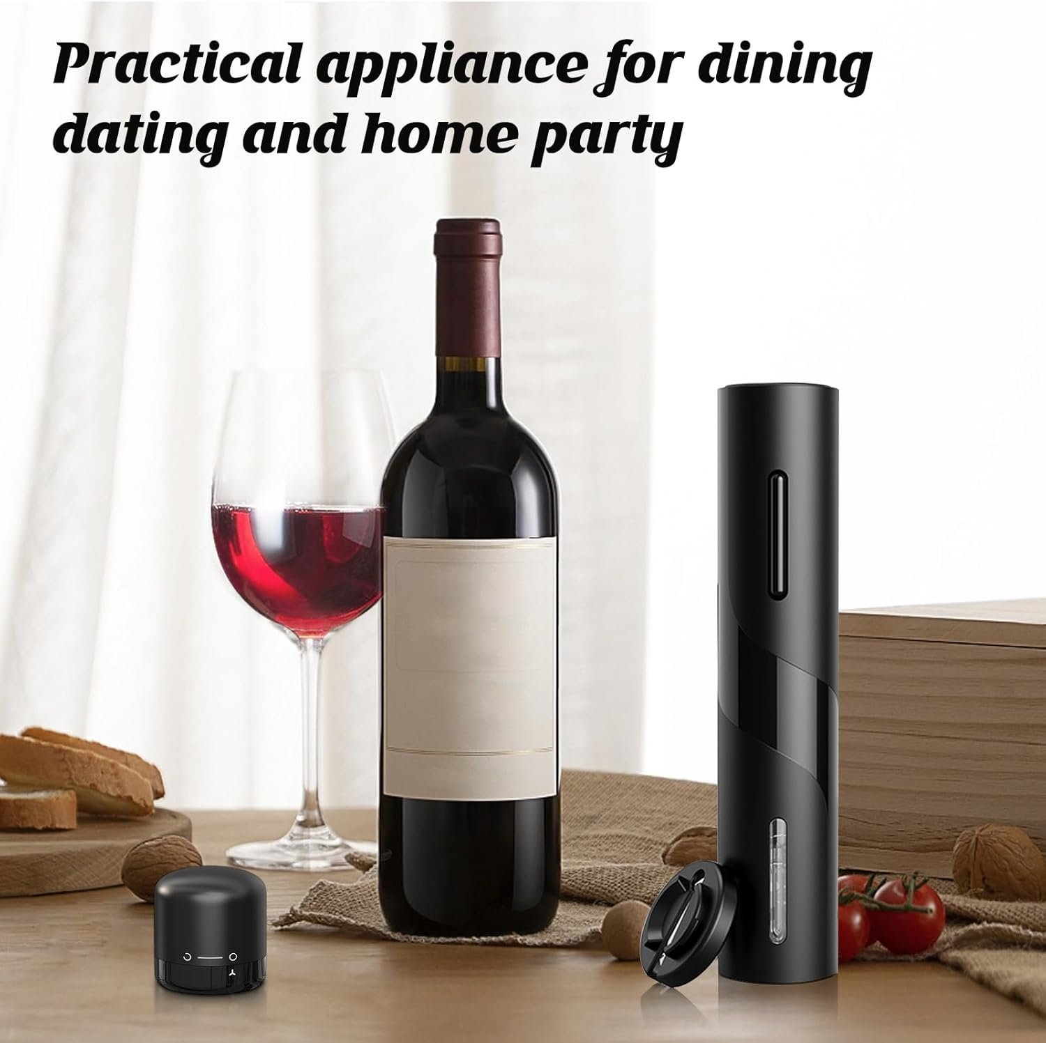 【HIGH QUALITY & DURABILITY】The automatic wine opener equipped with premium motor which enhances the operation quality and durability. The outstanding surface finishing of the opener facilitates holding feelings. The wine preserver has food grade silicone plug, safe to use.