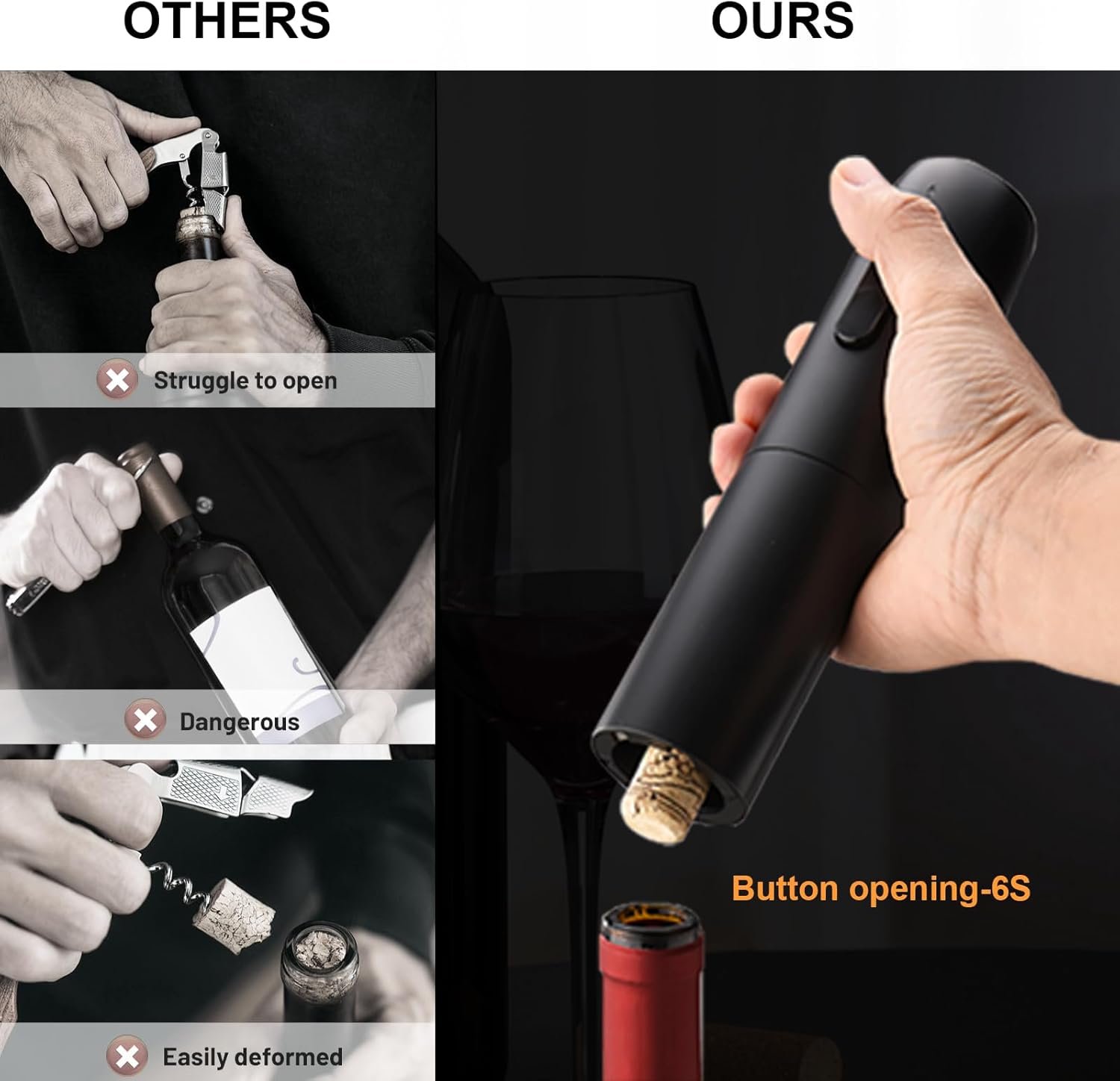 Easy Wine Corkscrew: Our electric wine opener can carefully extract the cork at the touch of a button. Press the release button to remove the cork from the corkscrew. Noiseless and fast, it can safely remove corks in about 6 seconds.