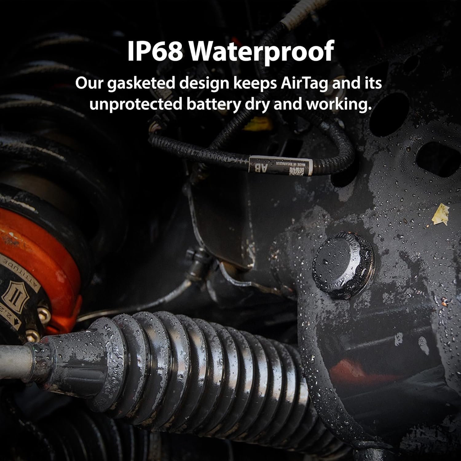 IP68 Waterproof – Gasketed design keeps AirTag and its unprotected battery dry.