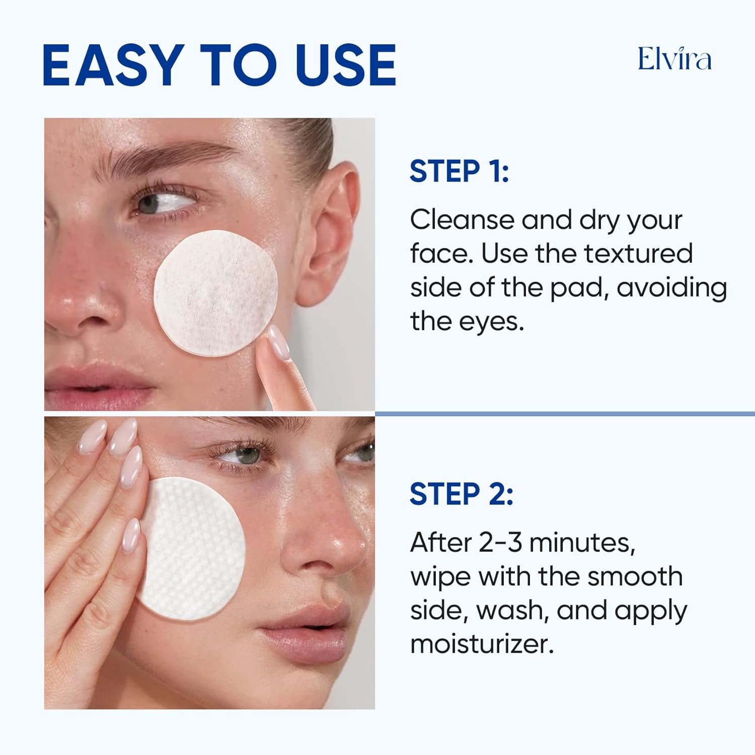 How to Use the Product: Start with a clean and dry face. Apply the smooth side of the pad, wait 2-3 minutes, and then gently wipe with the textured side