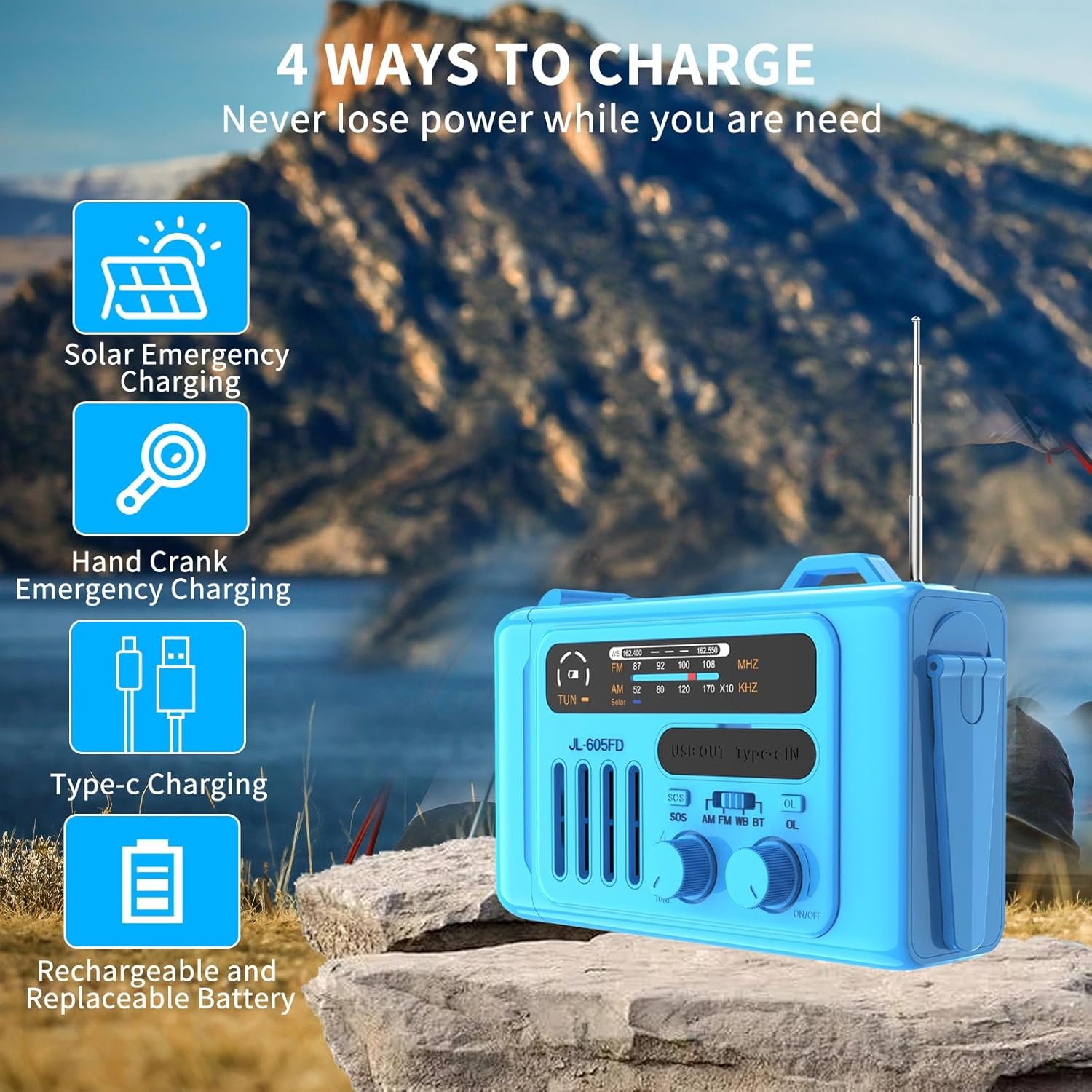 【Bluetooth Speaker Function】The portable emergency weather radio has Bluetooth function, you can connect your phone via Bluetooth as a speaker to listen to your favorite music. If you receive a call while using Bluetooth, you can also make a wireless call. Perfect for the beach, camping, forest and hiking.
