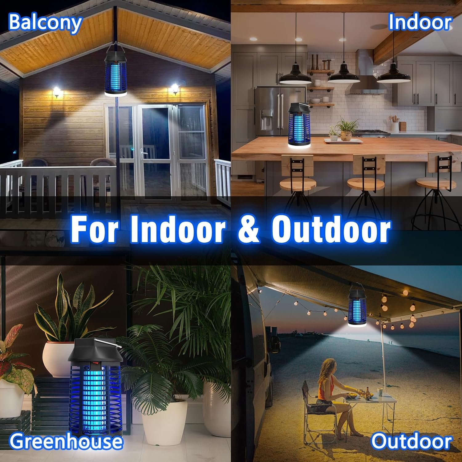 IPX6 WATERPROOF: Designed with IPX6 grade waterproof, Endbug electric bug zapper is resistant to harsh weather conditions, ensuring longevity. With a hanging hook, it can be used in various locations, including home, balcony, patio, garden, porch, courtyard, farm, office, swimming pool, garage, pergola and more.