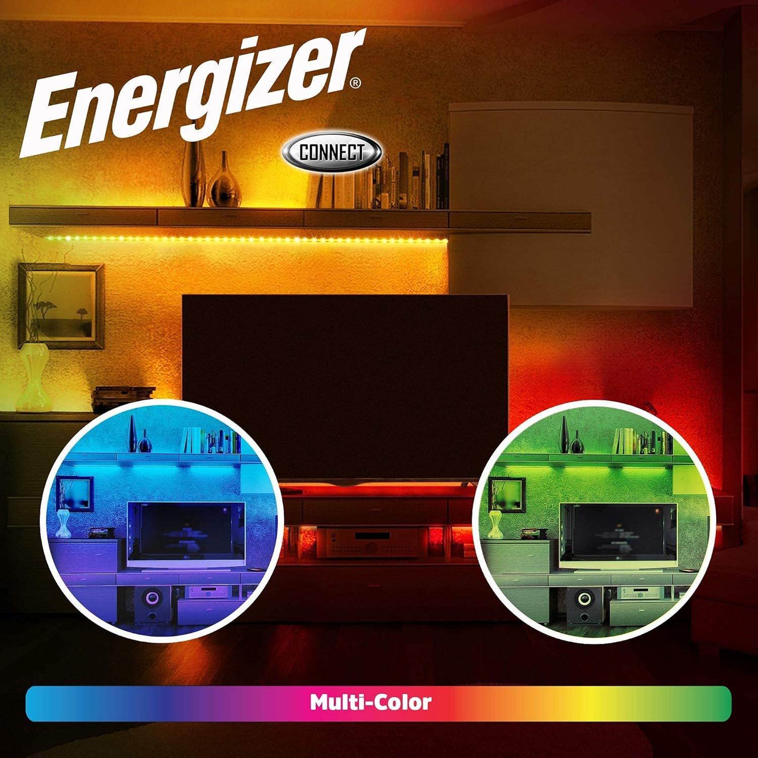 Energizer Smart Wi-Fi LED Light Strip, 16.4ft, Multi-Color and Single White, with App, Compatible with Alexa, Google Assistant and Siri, Customizable, Kitchen, Bedroom, Office, Monitor Backlighting
