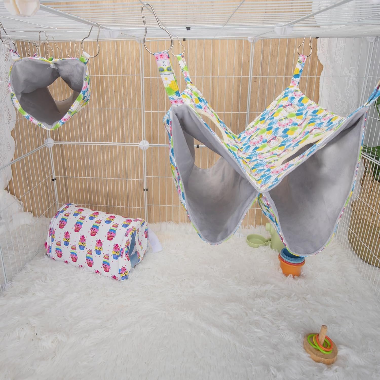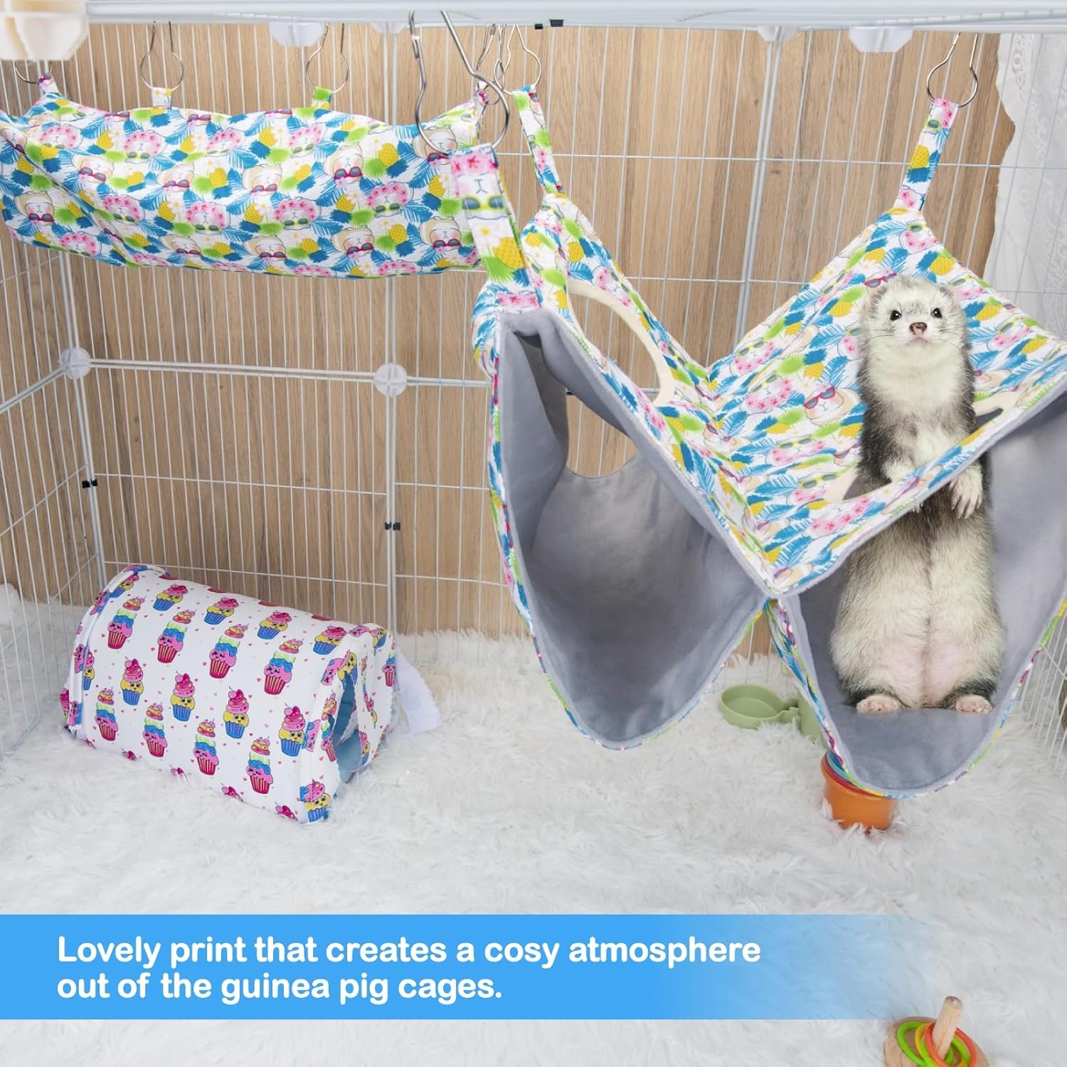 【CUTE GUINEA PIG PRINT】Our ferret hammock is designed with a combination of guinea pig,clover and fruit prints.Cute soft and cozy.Perfect for ferrets, guinea pigs, squirrels and other small animals.