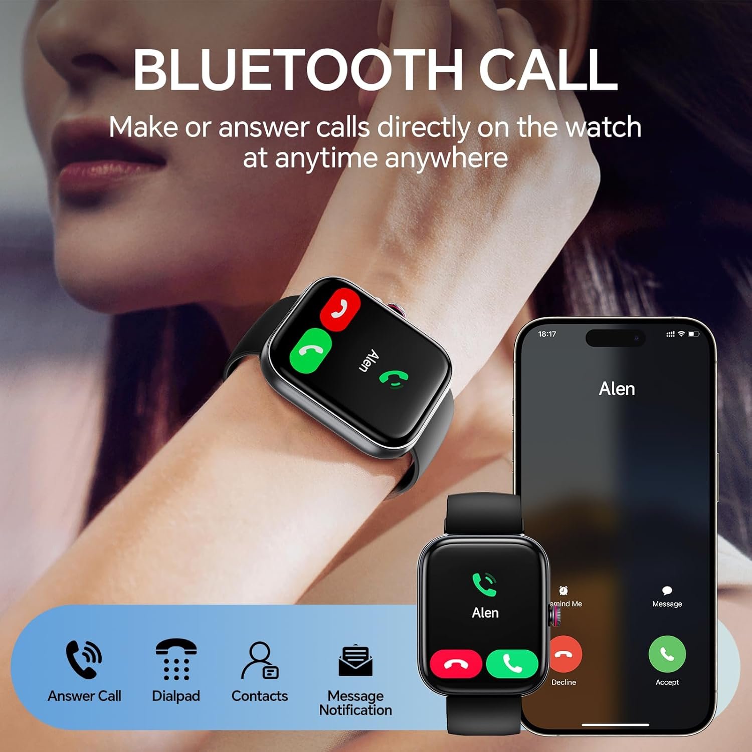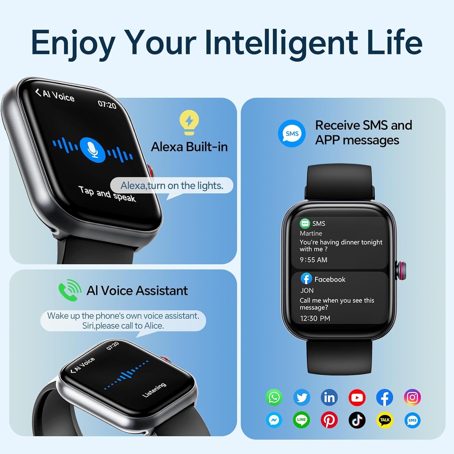 Bluetooth Call (Answer/Make Call), TEXT&APP Message notification, Alexa Built-in, AI VOICE